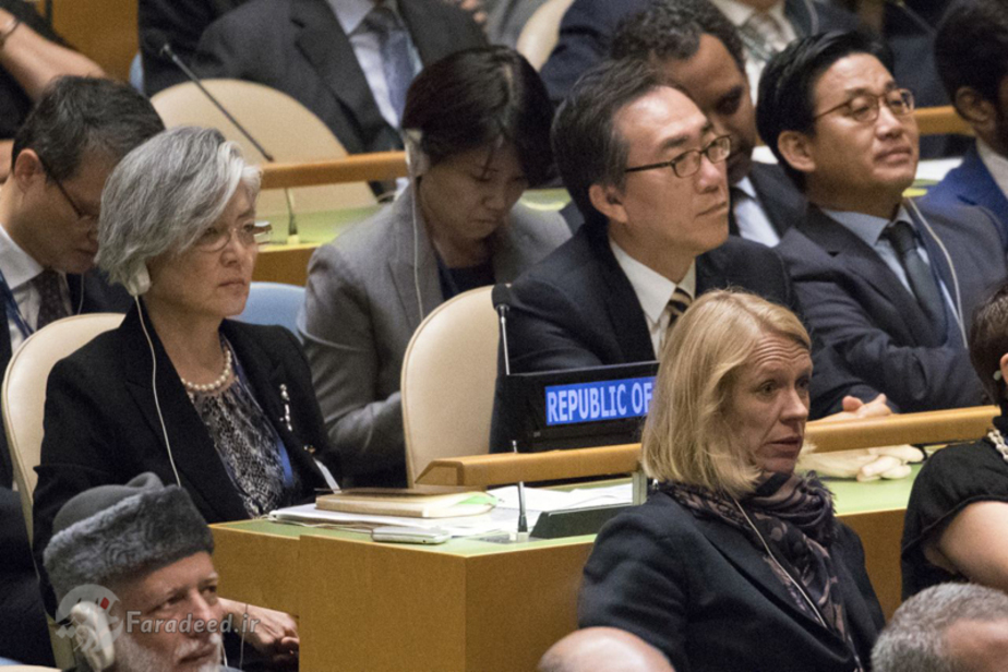 رئیس جمهوری آمریکا در بخش دیگری از سخنان خود کره شمالی را به «نابودی کامل» در صورت عدم عقب نشینی پیونگ یانگ از برنامه هسته ای اش تهدید کرد. در هنگام سخنرانی ترامپ، شماری از سران و مقامات کشورها از جمله عادل الجبیر وزیر امور خارجه عربستان و همچنین بنیامین نتانیاهو و همسرش در سالن دیده میشدند. تیلرسون و نیکی هیلی نیز ترامپ را در هنگام حضور درسازمان ملل همراهی میکردند.