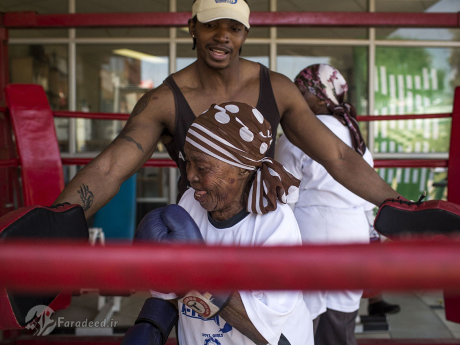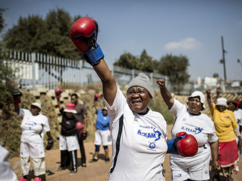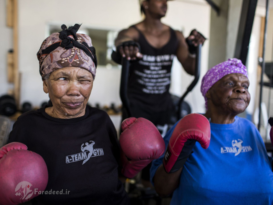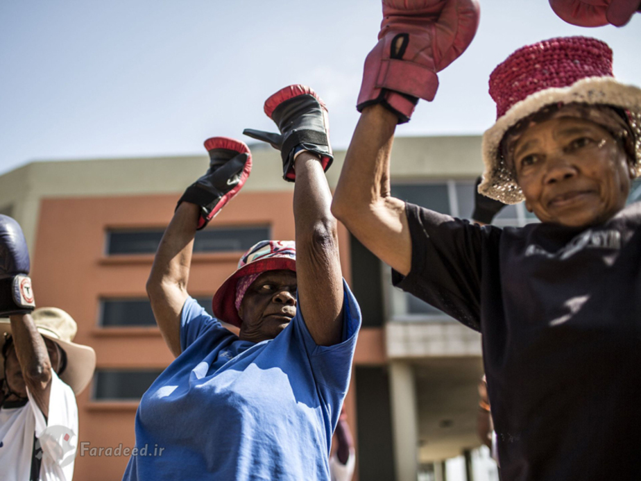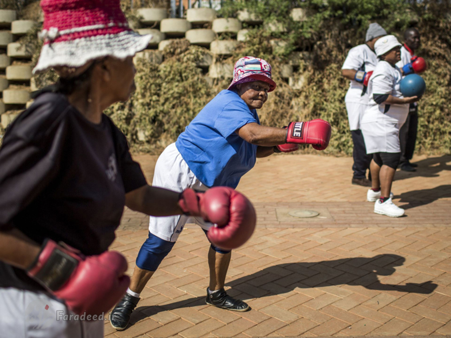 یک باشگاه مشت زنی در ژوهانسبورگ افریقای جنوبی به پاتوق مادربزرگ های 70 ساله تبدیل شده که برای ورزش و سرگرمی مشت زنی را انتخاب کردهاند!