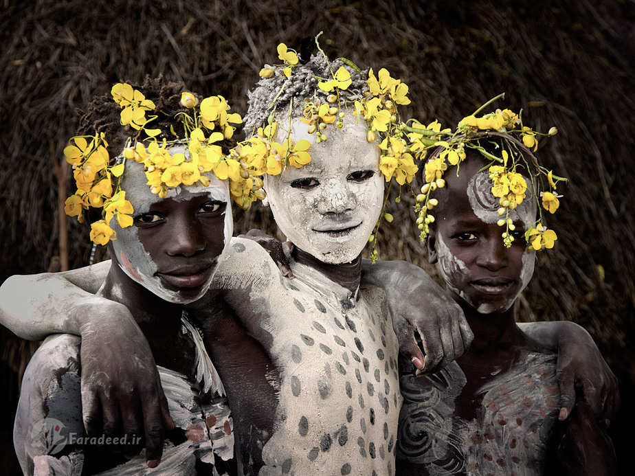 اتیوپی، قبیله کارو: دره اُمو واقع در دره کافتی بزرگ آفریقا، محل زندگی تقریبا ۲۰۰ هزار نفر است که از هزار سال پیش در این مکان میزیسته اند. در میان آنها، ۱۰۰۰ تا ۳۰۰۰ نفر از مردم قبیله کارو وجود دارند که در کرانههای شرقی رودخانه اُمو ساکن هستند. آنها در طی سال ها، دیگر به سیلابهای این رودخانه عادت کرده اند و به خوبی میدانند که چه زمانی احتمال وقوع سیل نزدیک است. کشاورزی پیشه اصلی آنهاست و ذرت خوشه ای، ذرت، و لوبیا محصولاتی هستند که به کشت آن میپردازند.