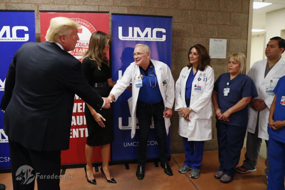 فرادید | رئیس جمهوری آمریکا در پی رخ دادن حادثه تروریستی چند روز پیش در لاس وگاس، به عیادت بازماندگان این حادثه رفت و آن را خیلی غم انگیز دانست.