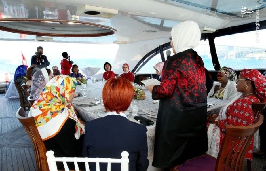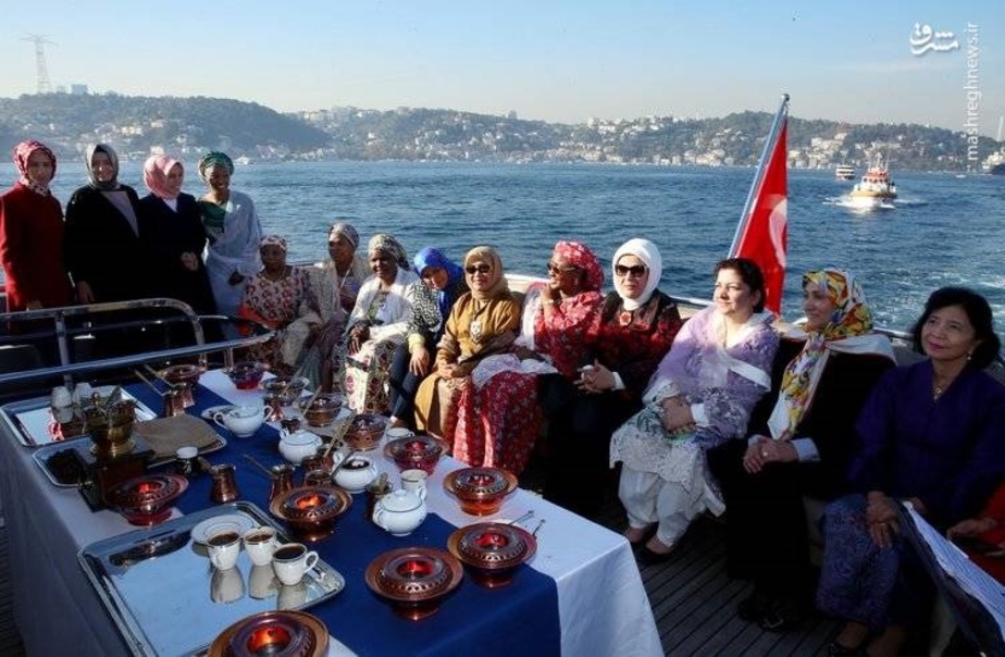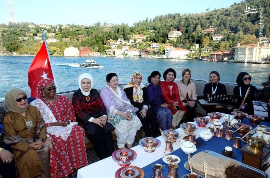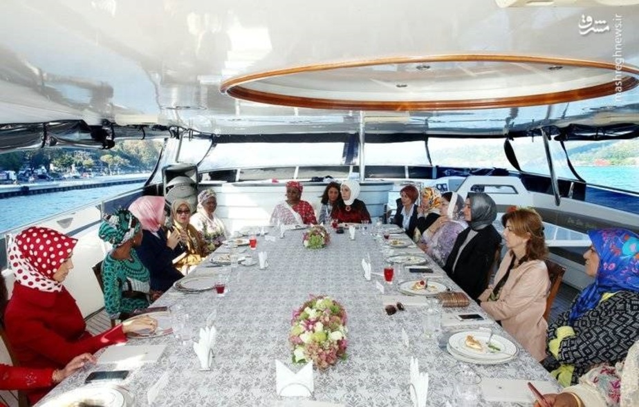 در گزارش تصویری زیر همسر اسحاق جهانگیری و دیگر مقامات اجلاس دی-۸ در ضیافت ناهار همسر اردوغان را میبینید.