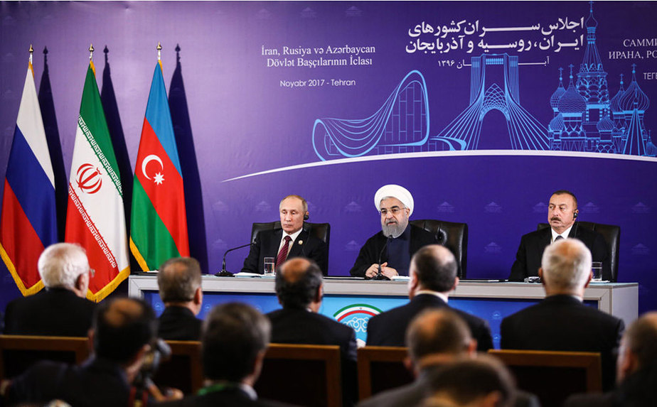 فرادید | نشست سه جانبه ایران، روسیه و آذربایجان با حضور حسن روحانی، ولادیمیر پوتین و الهام علیاف روسای جمهوری ایران، روسیه و جمهوری آذربایجان، چهارشنبه (۱۰ آبان) در سالن اجلاس سران برگزار شد.