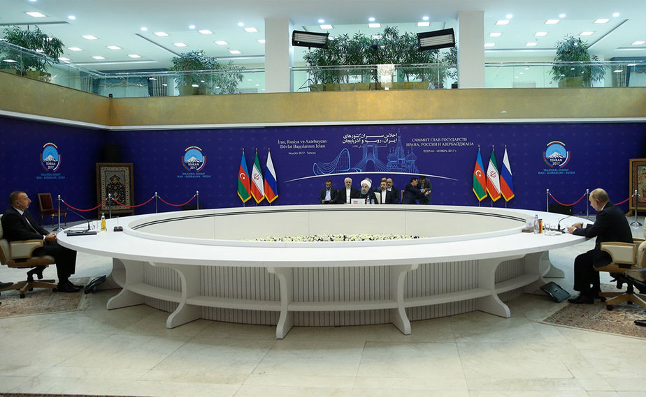 نشست سه جانبه روسای جمهور ایران، روسیه و آذربایجان در سالن اجلاس سران برگزار شد.