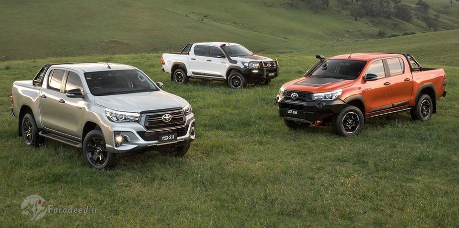 به گزارش فرادید، این سری که علاوه بر آخرین تغییرات هایلوکس فیسلیفت 2018، از برخی ادوات اضافه و فرم متفاوت جلوپنجره برخوردار است، در سه گونه راگ (Rogue)، راگد (Rugged)، راگد ایکس (Rugged X) قرار است ابتدا به دست خریداران استرالیایی برسد و سپس به سایر بازارهای آسیایی صادر شود. گفته میشود زمان تحویل این خودروها ابتدای تابستان 2018 است.
