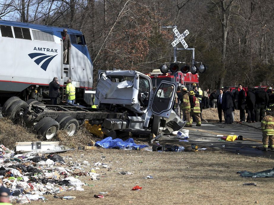 تصاویر/ تصادف قطار نمایندگان کنگره آمریکا با کامیون حمل زباله