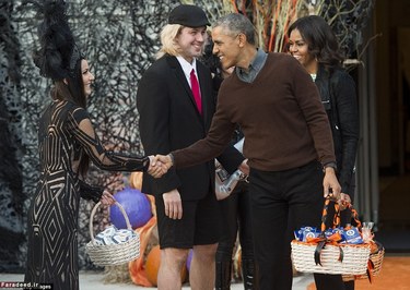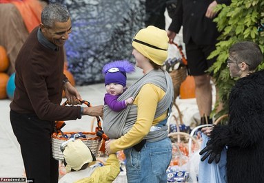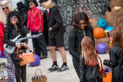 صدها کودک به لباسهای ترسناک به باغچه چمنی جنوبی کاخ سفید رفتند تا هالوین را با باراک اوباما و بانوی اول آمریکا جشن بگیرند.