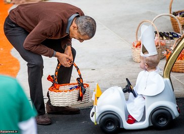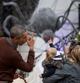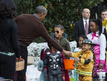 فرادید | صدها کودک به لباسهای ترسناک به باغچه چمنی جنوبی کاخ سفید رفتند تا هالوین را با باراک اوباما و بانوی اول آمریکا جشن بگیرند.