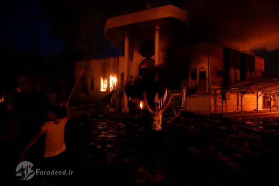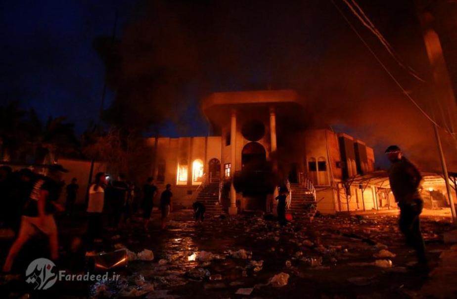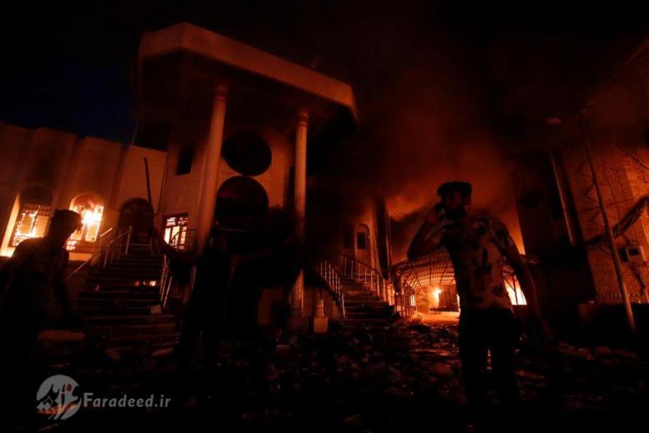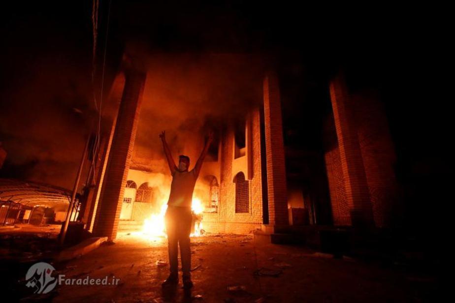 تصاویر/ آتش زدن کنسولگری ایران در بصره