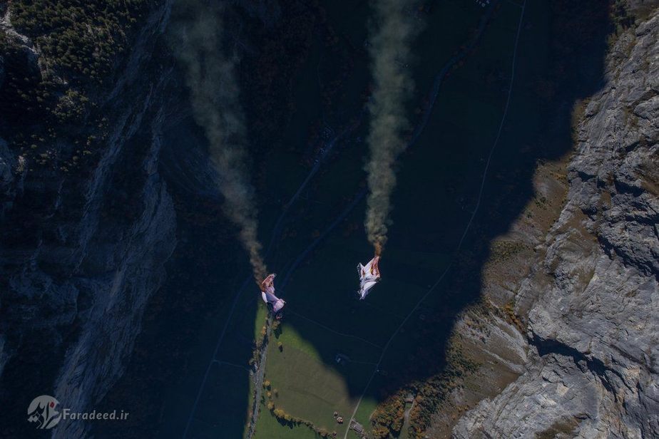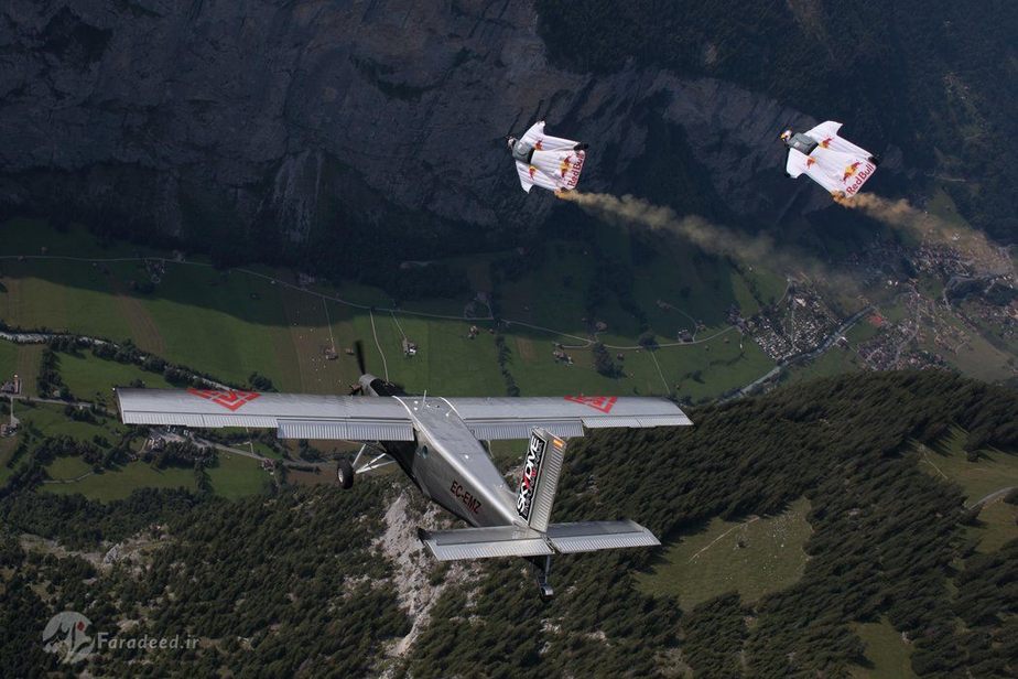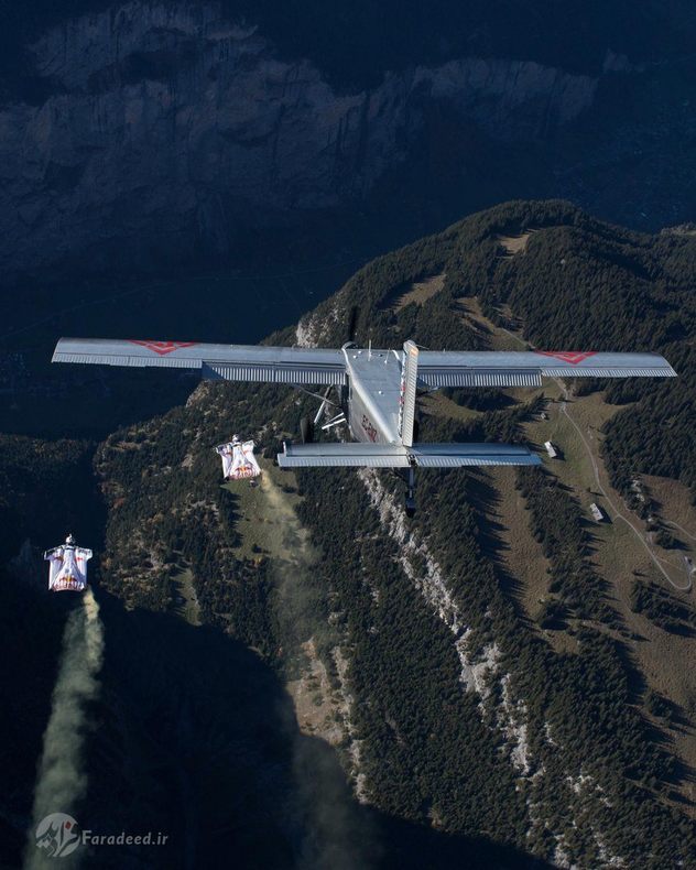 دو چتر باز معروف به کمک هواپیما در بالای کوههای سوئیس شروع به حرکات خارقالعاده کردند.