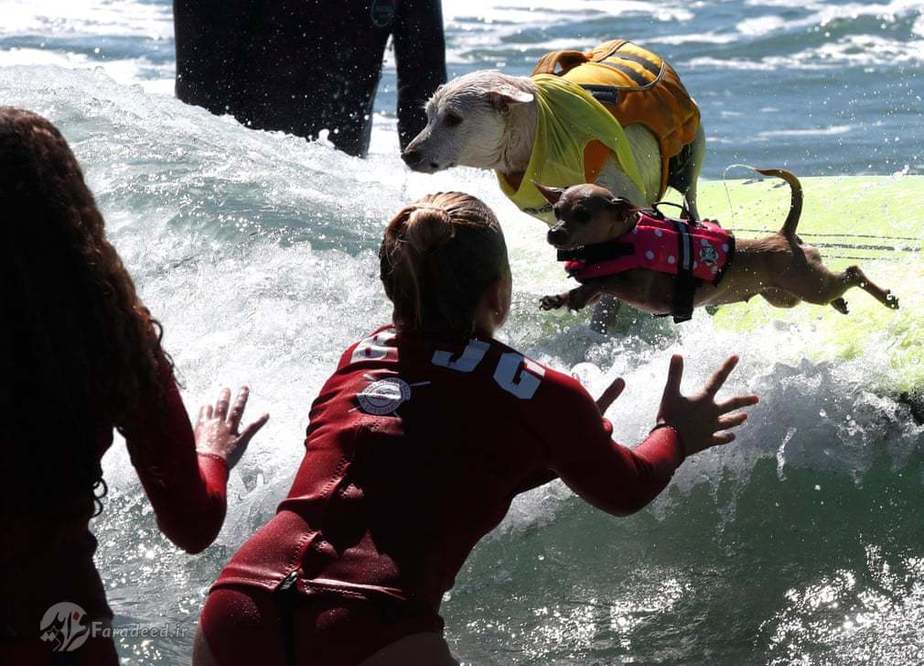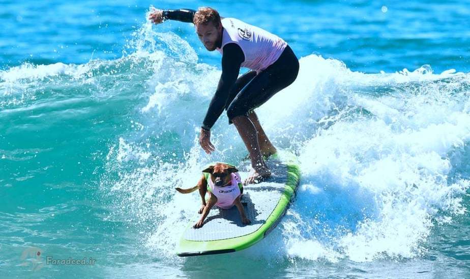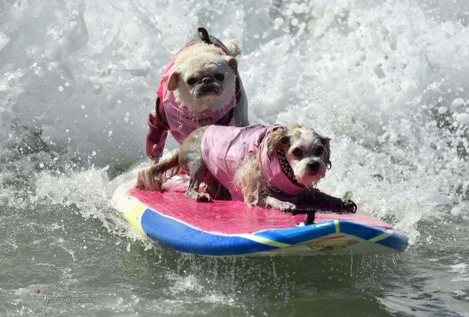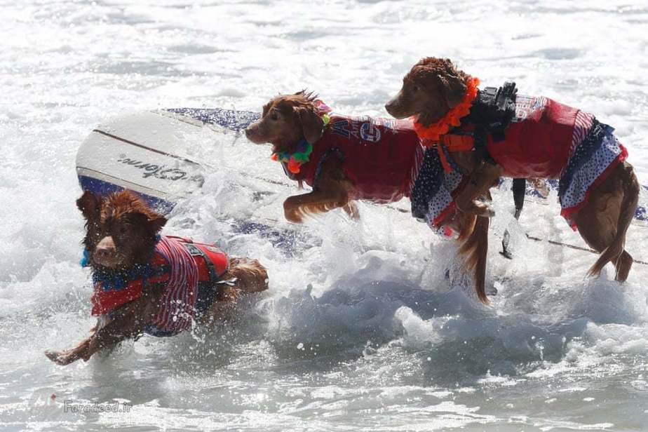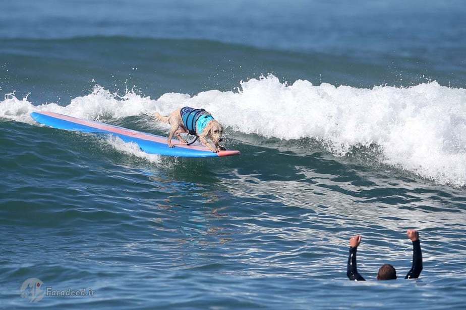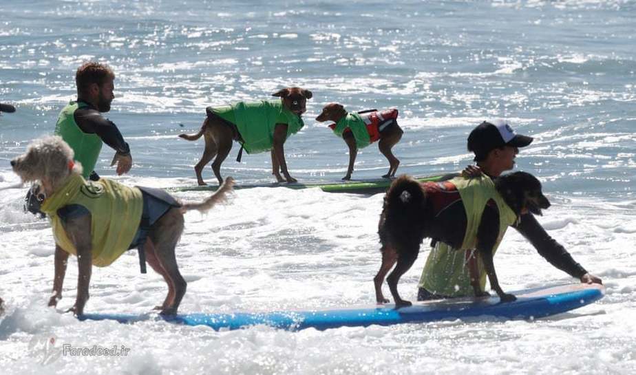 در کالیفرنیا مسابقاتی برگزار شد که سگها در قالب مسابقه ورزشی موج سواری با یکدیگر به رقابت پرداختند.