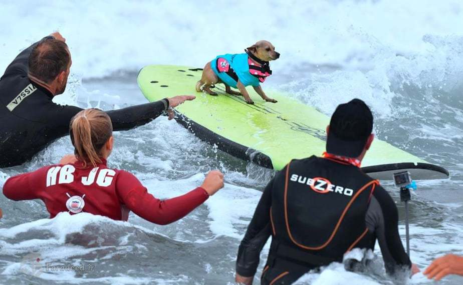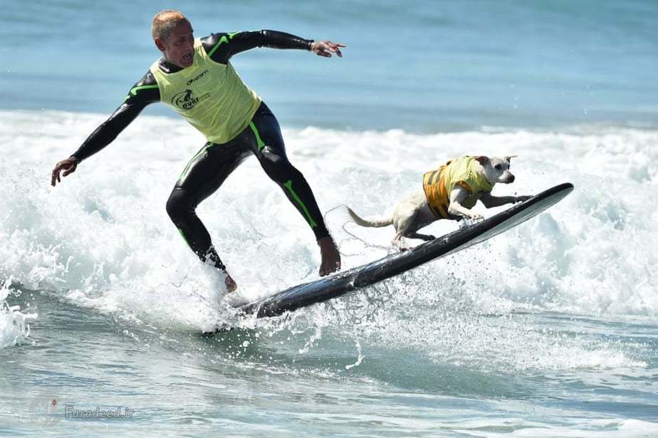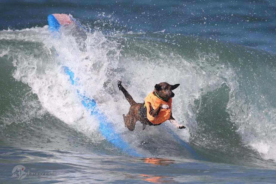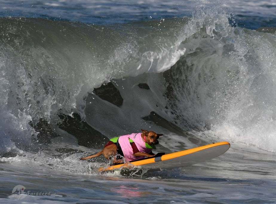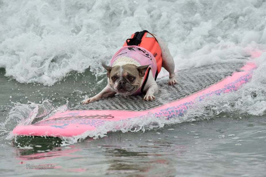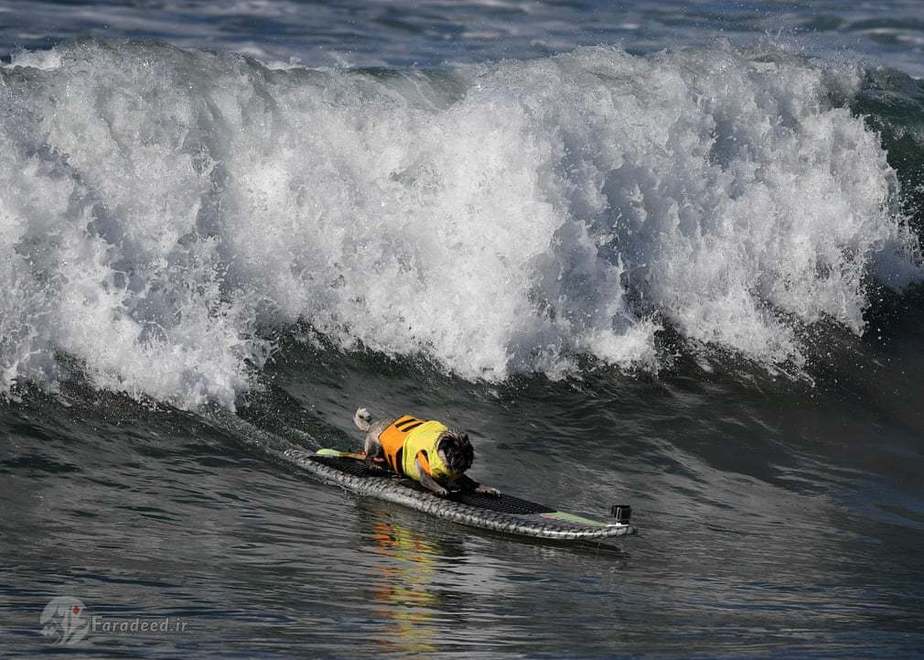 در کالیفرنیا مسابقاتی برگزار شد که سگها در قالب مسابقه ورزشی موج سواری با یکدیگر به رقابت پرداختند.