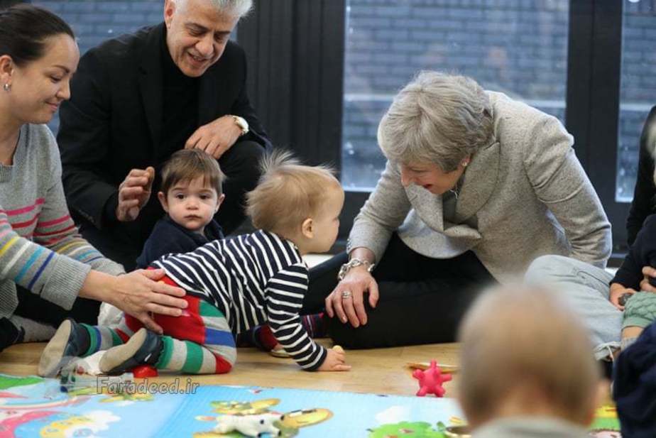 "ترزا می" در جمع کودکان و والدین در بازدید از مرکز بهداشت شهر کنتیس لندن