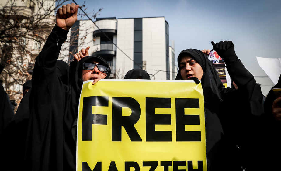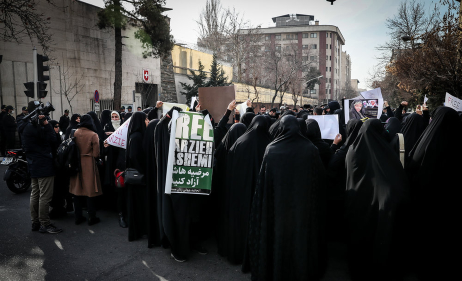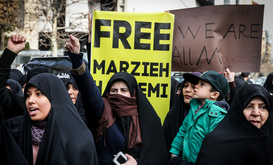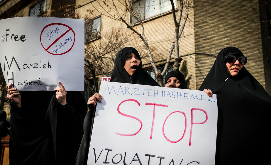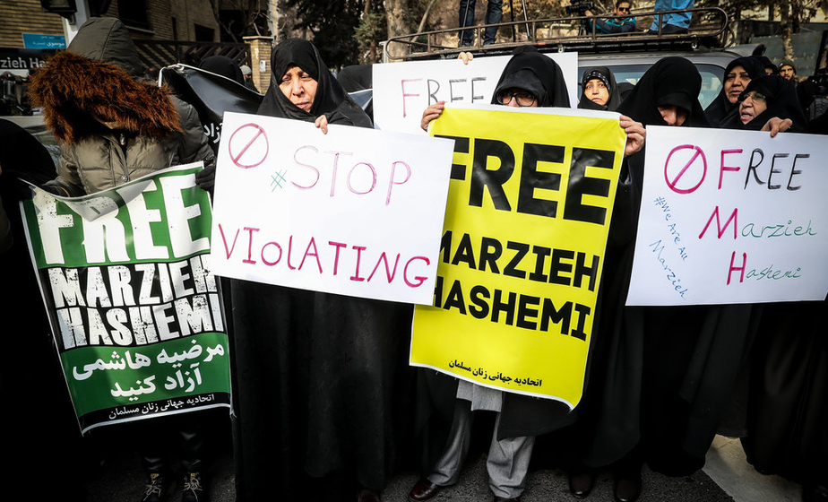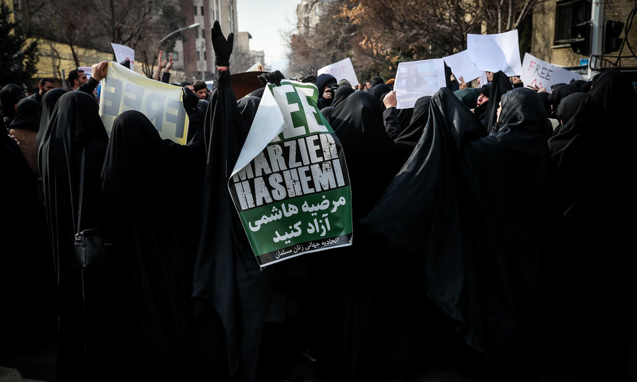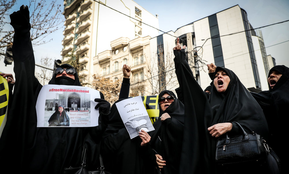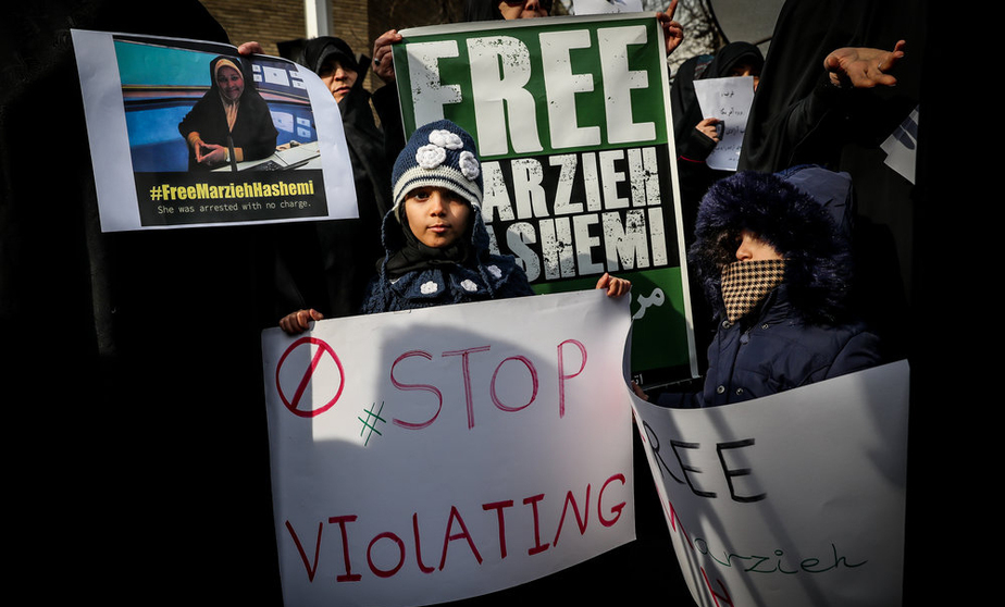 تجمعی در حمایت از «مرضیه هاشمی» خبرنگار آمریکایی الاصل پرس تی وی که توسط آمریکا بازداشت شده است، در مقابل سفارت سوئیس (دفتر حفظ منافع امریکا) تجمع کردند: