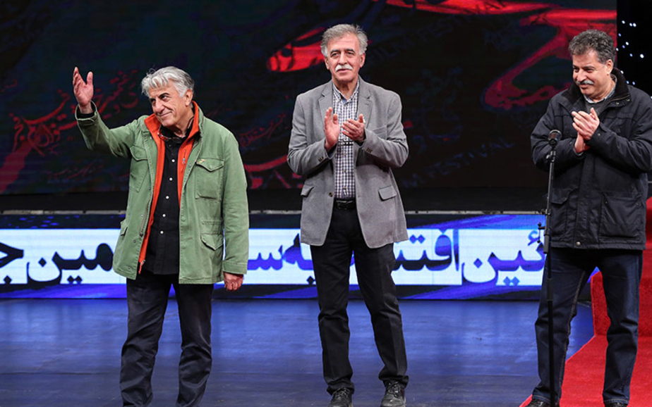رضا کیانیان، علیرضا رئیسیان و همایون اسعدیان برای بزرگداشت معتمدآریا روی صحنه آمدند.