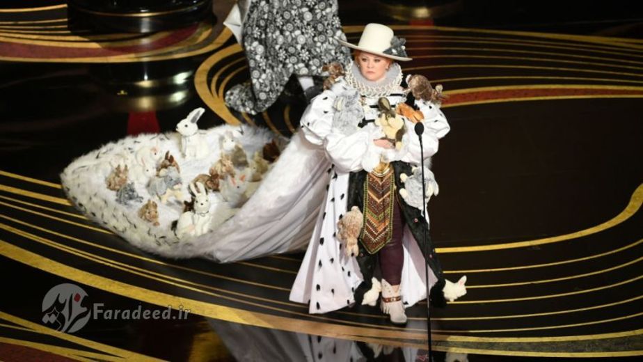 ملیسا مک کارتی و برایان هنری با فیلم «محبوب» شوخی کردند و با لباس های متعلق به قرن 18 ام روی صحنه اسکار حاضر شدند.