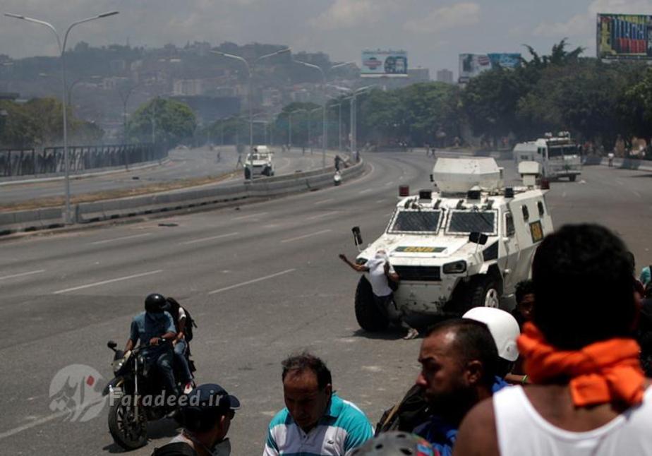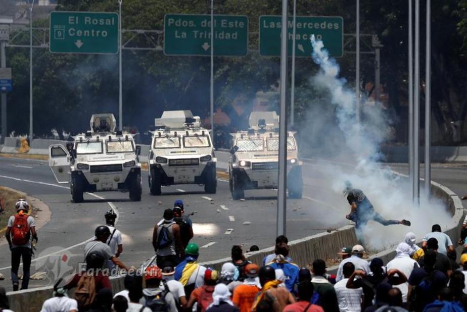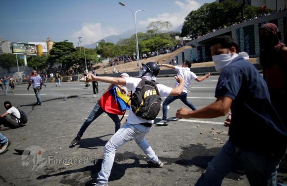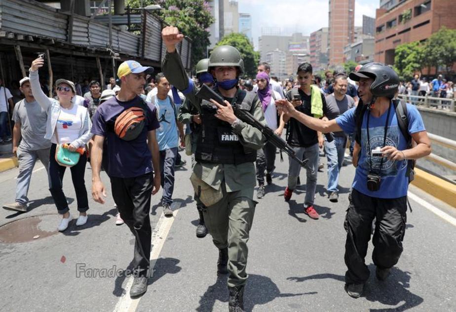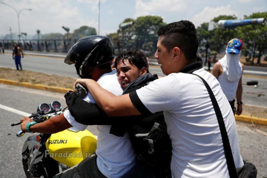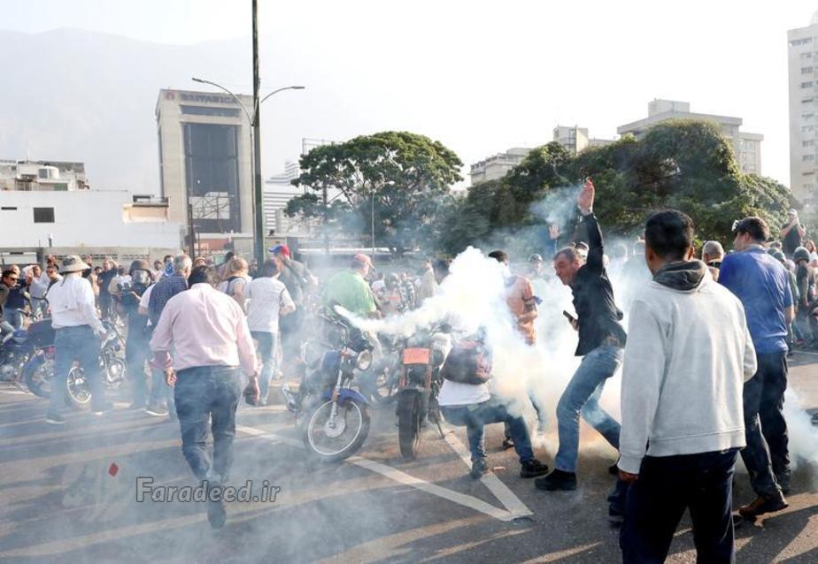 فرادید | بعد از آنکه خوآن گوآیدو، رهبر مخالفان ونزوئلا، روز سه شنبه در کنار سربازان و در یک پایگاه نظامی حاضر شد و از مردم درخواست کرد علیه رئیس جمهور، نیکولاس مادورو، به پا خیزند، بین معترضان ضد دولتی و افسران نیروی انتظامی جنگی خیابانی درگرفت.