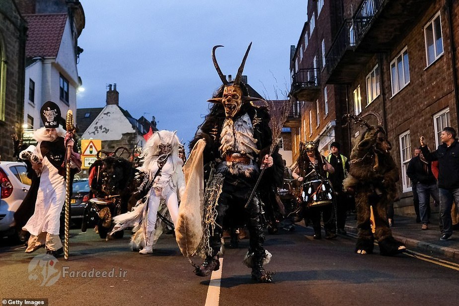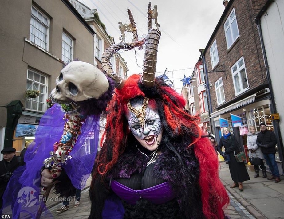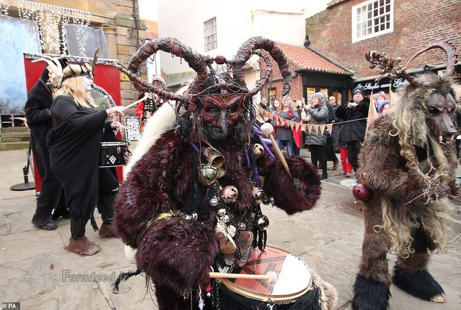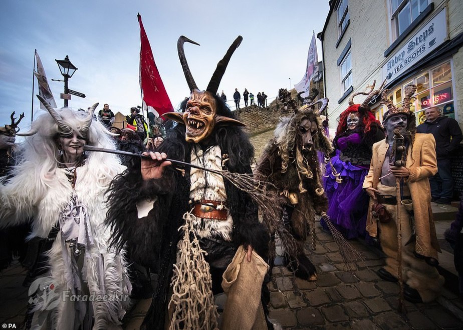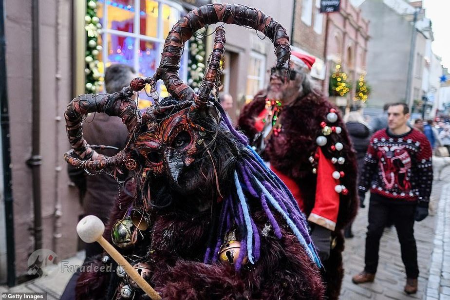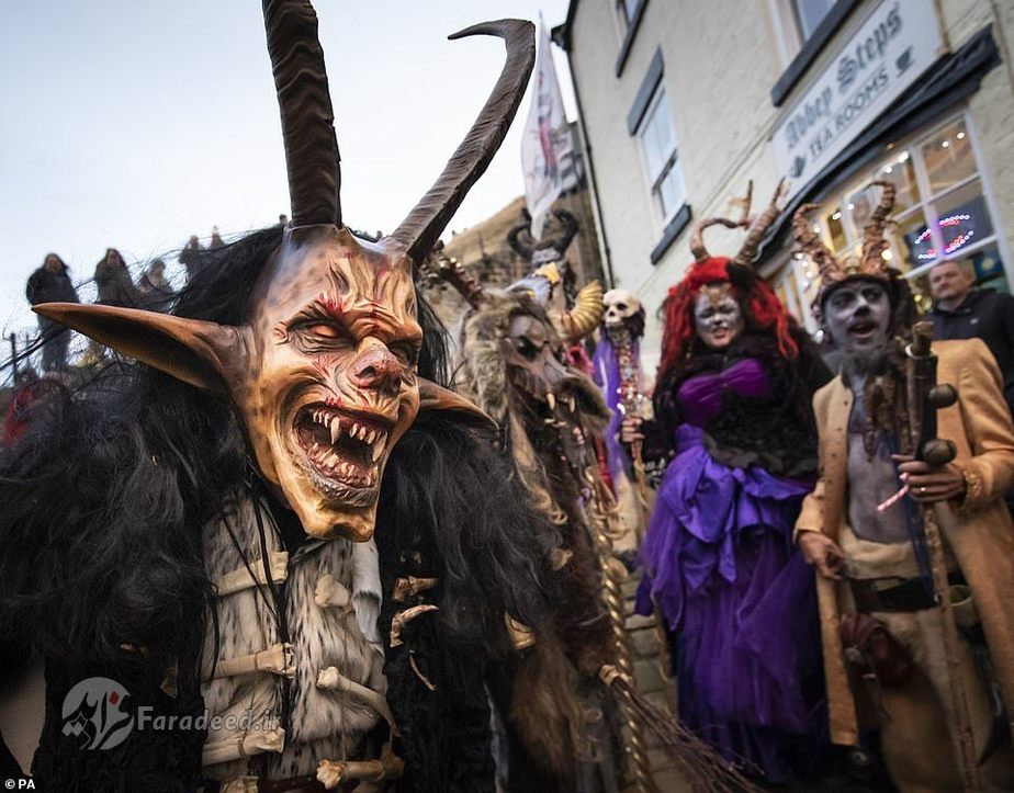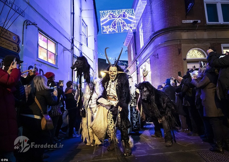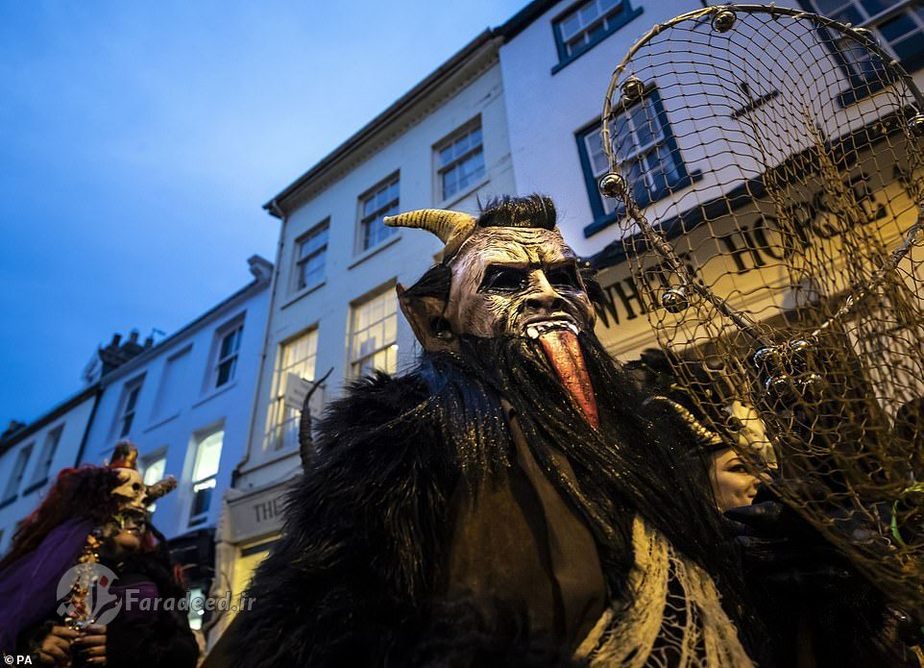 فرادید | صدها نفر به خیابانهای ویتبی در انگلستان آمدند تا به افتخار کرامپوس، مخلوق افسانهای شاخداری که در سفرهای بابانوئل همراه اوست، رژه برگزار کنند.