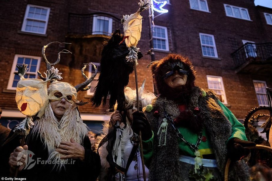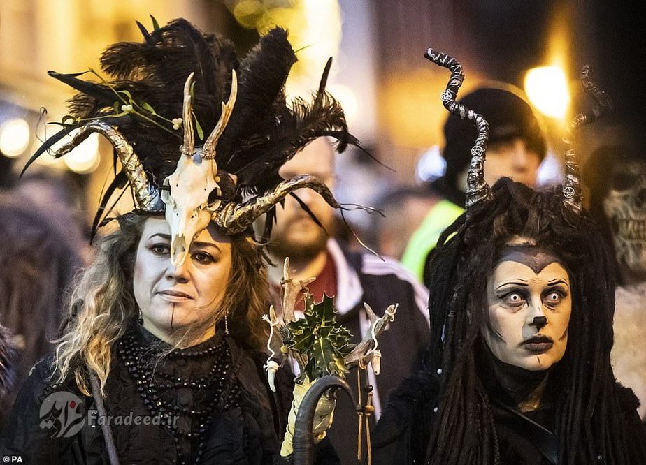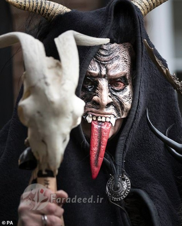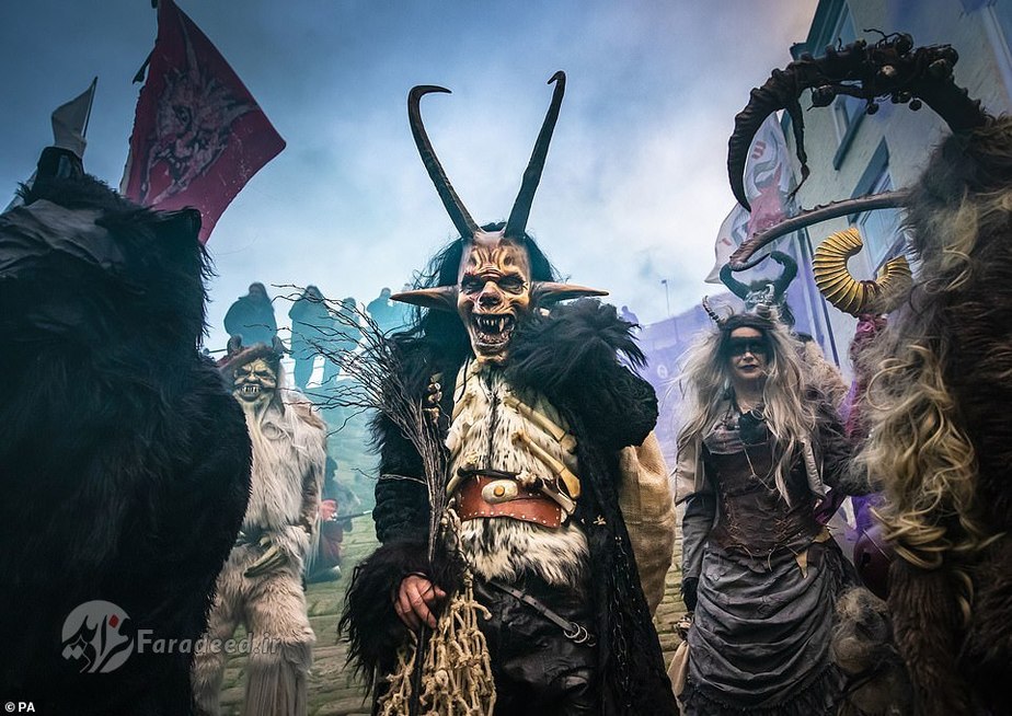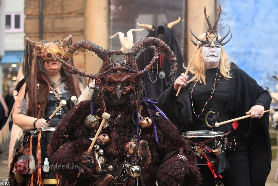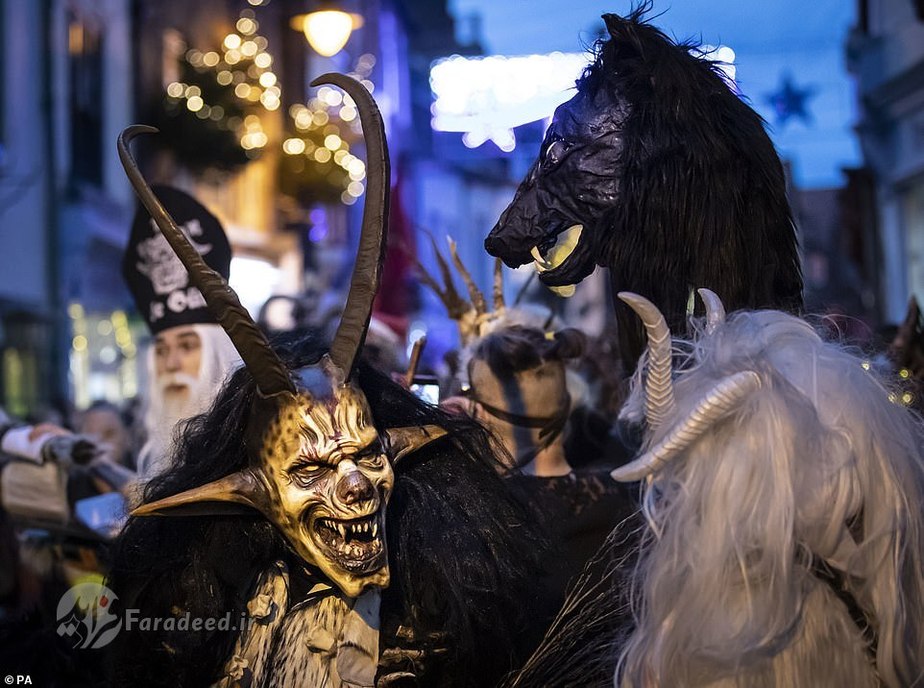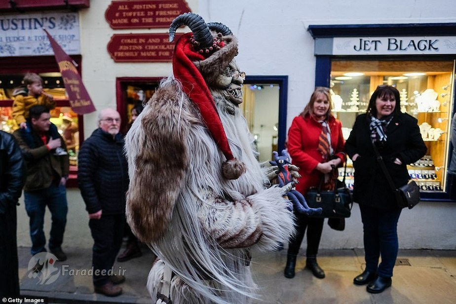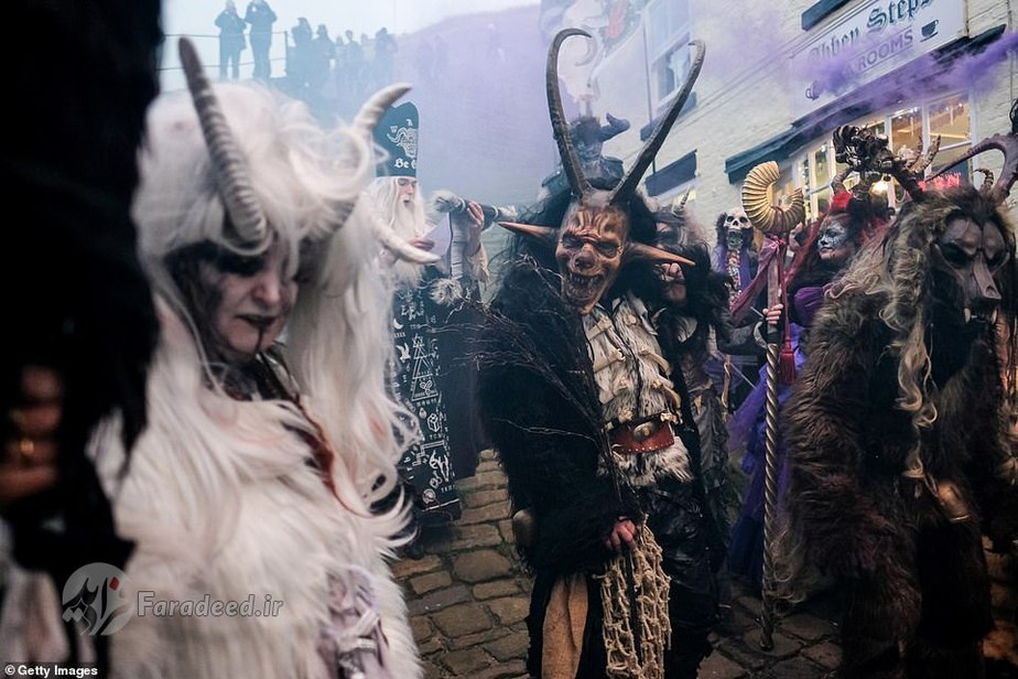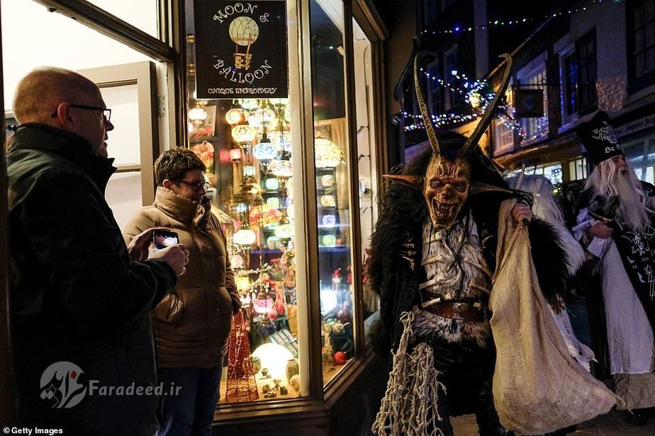 فرادید | صدها نفر به خیابانهای ویتبی در انگلستان آمدند تا به افتخار کرامپوس، مخلوق افسانهای شاخداری که در سفرهای بابانوئل همراه اوست، رژه برگزار کنند.