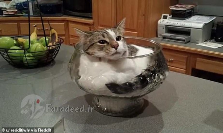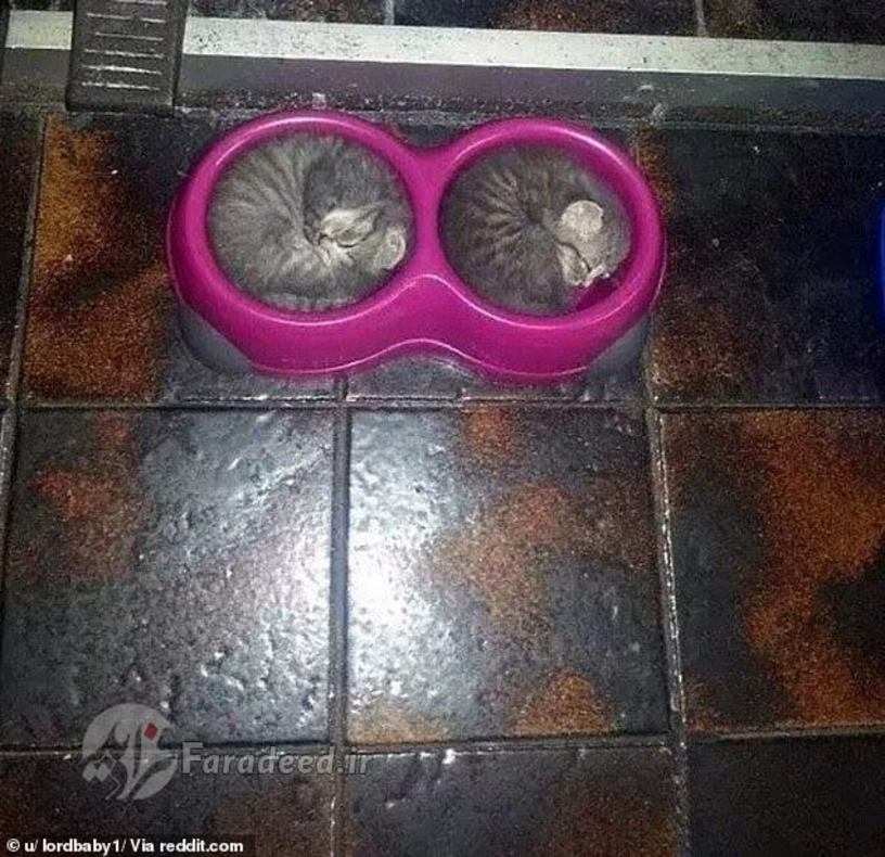 در یکی از تصاویر دو بچه گربه به این نتیجه رسیدهاند که کاسه جای مناسبی برای زیستن است و در عکس دیگر یک گربه عصبانی خودش را در یک گلدان جای داده است.