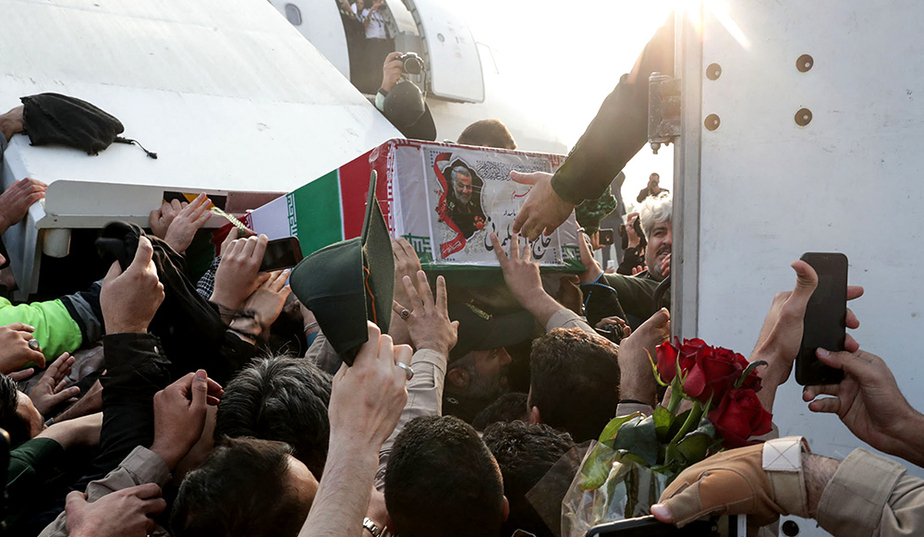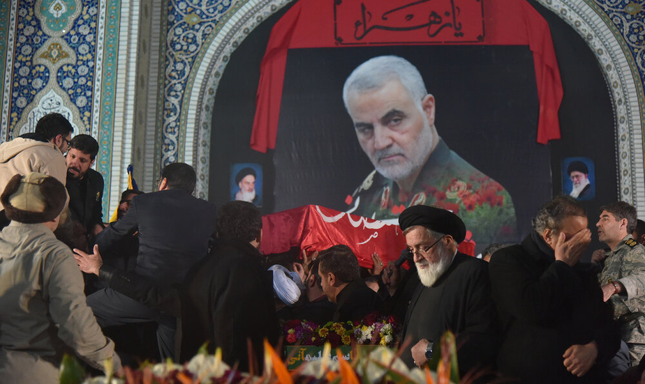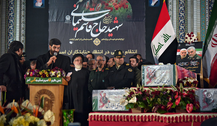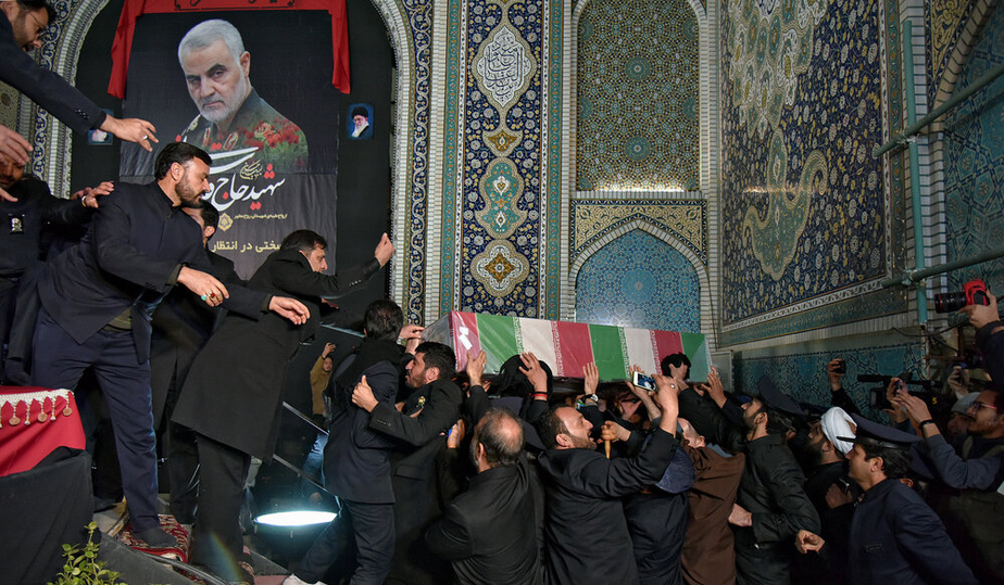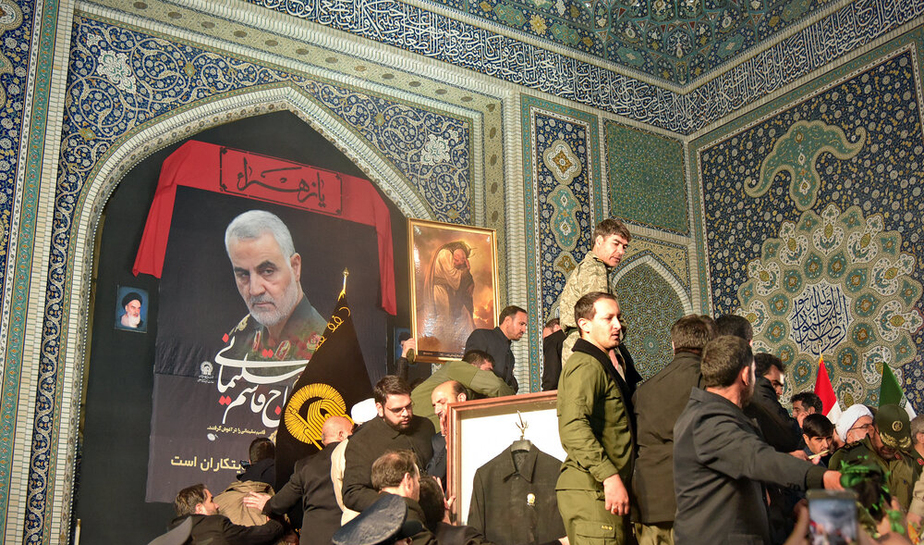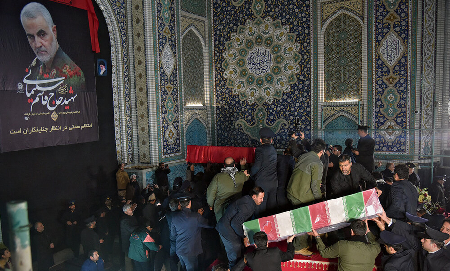مراسم وداع با پیکر مطهر سردار سپهبد شهید حاج قاسم سلیمانی، ابومهدی المهندس و همرزمان شهیدشان شامگاه یکشنبه با حضور باشکوه مردم در حرم مطهر رضوی برگزار شد.