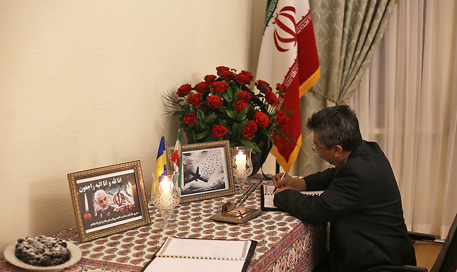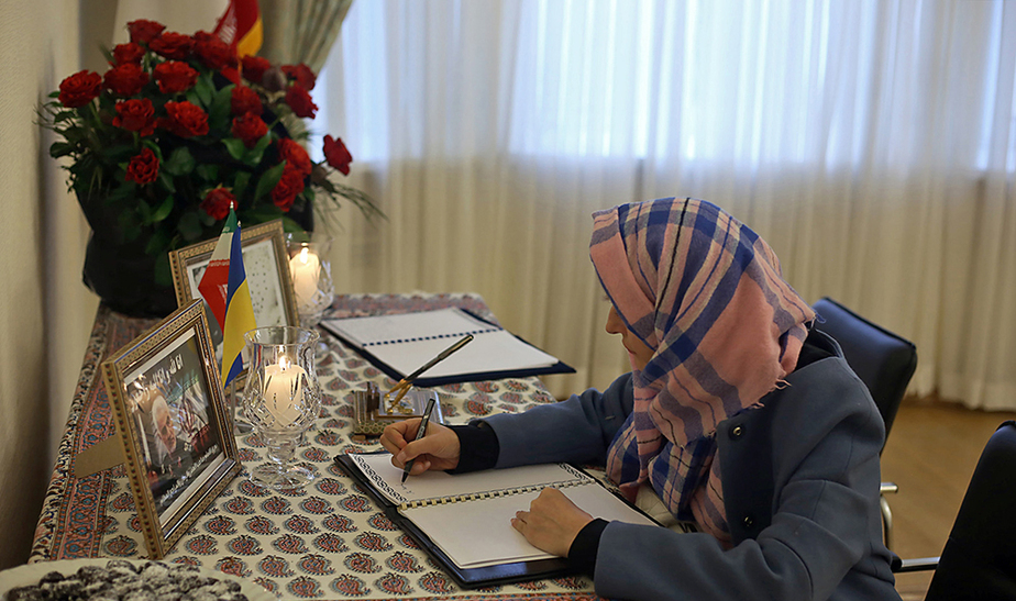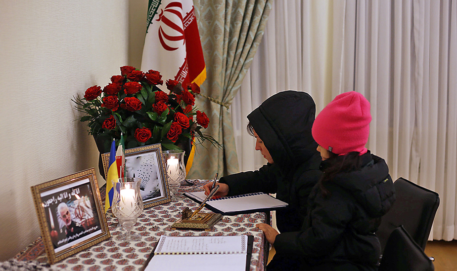 دفتر یادبود به مناسبت شهادت سردار قاسم سلیمانی و جان باختن سرنشینان هواپیمای مسافربری در سفارت جمهوری اسلامی ایران در اوکراین با حضور برخی از شخصیتهای سیاسی اوکراین، سفرا و دیپلماتهای مقیم، فعالان رسانهای و ایرانشناسان اوکراینی امضا شد.