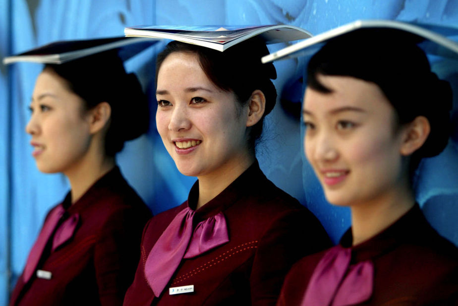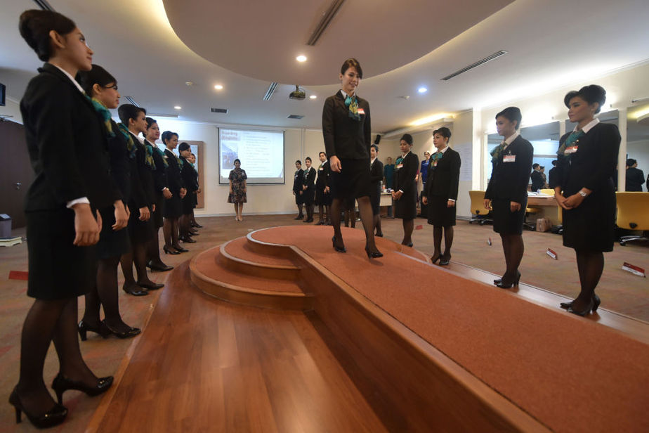 تصاویر/ تمرینات جالب مهمانداران هواپیما