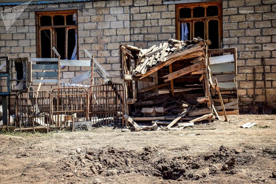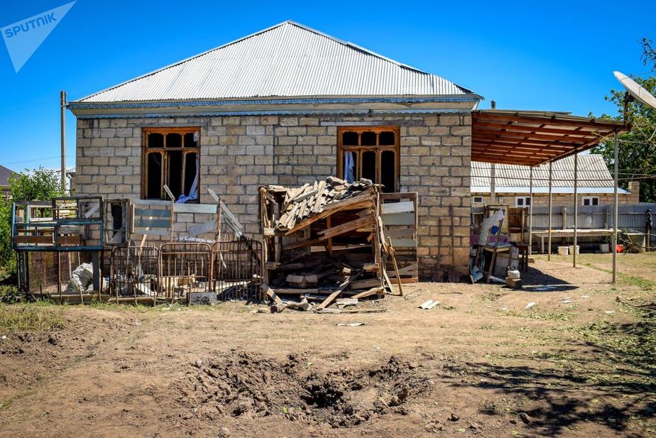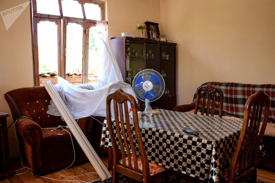 بقایای به جا مانده از تیراندازی‌ها در روستای دوندار گوشچو منطقه تاوزسکی آذربایجان واقع در مرز آذربایجان و ارمنستان: