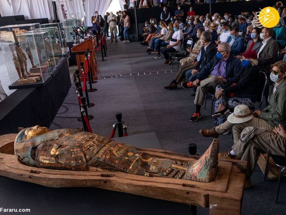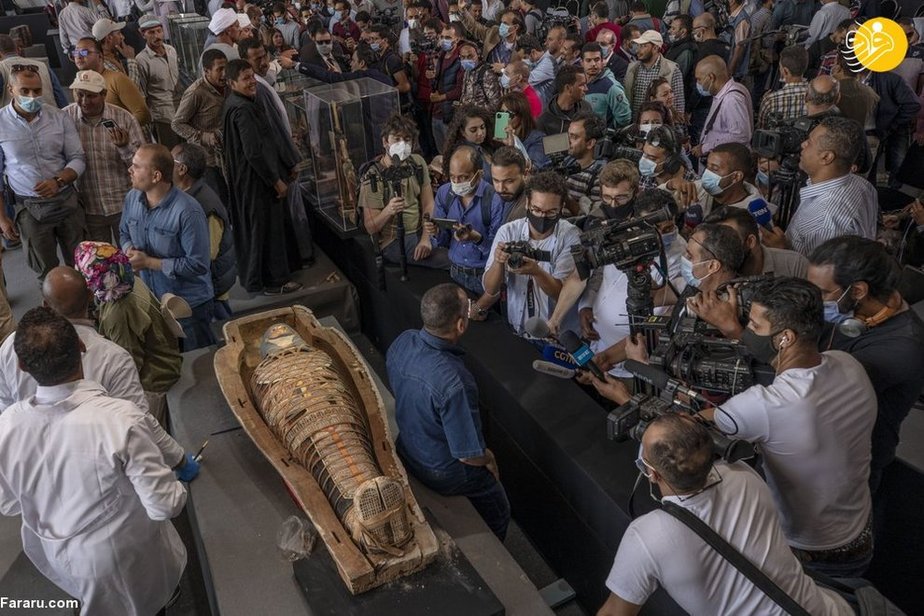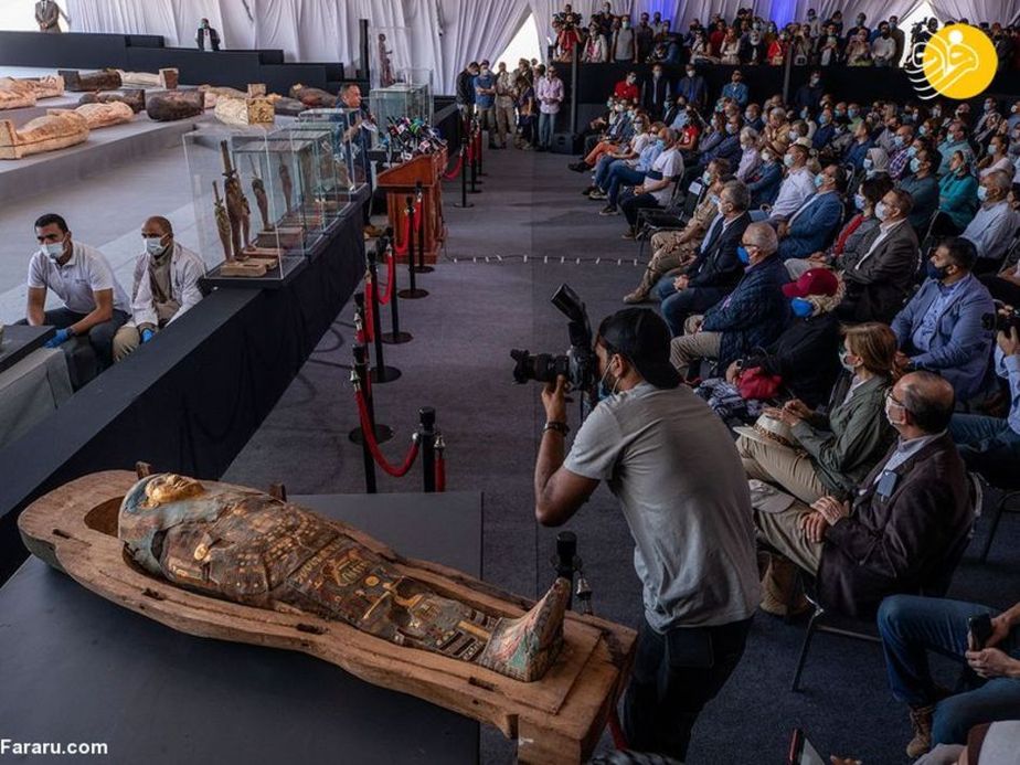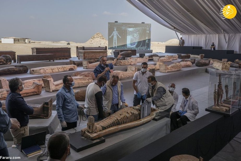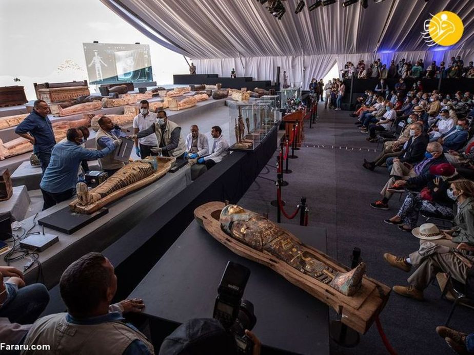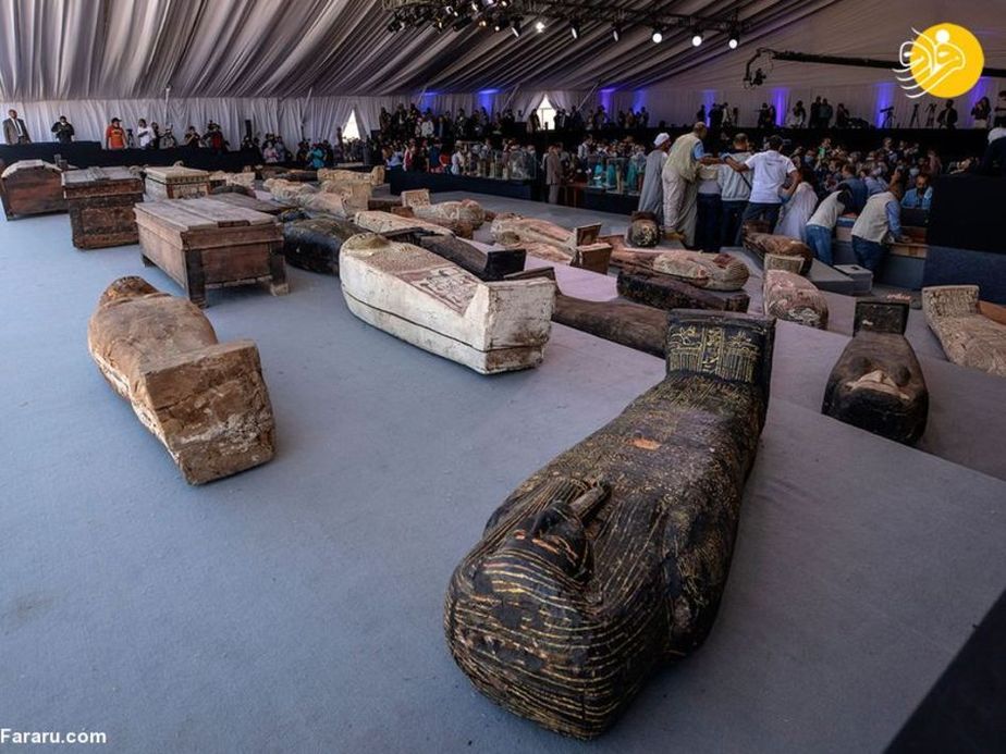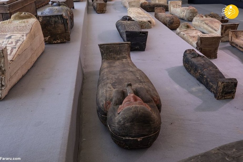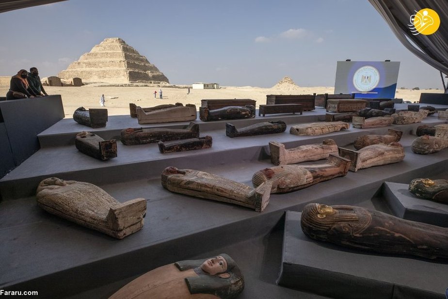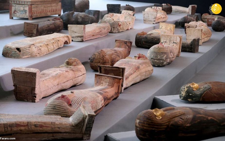 مقامات باستان شناسی مصر از کشف حداقل ۱۰۰ تابوت باستانی خبر داده اند که برخی شان دارای مومیایی میباشند. همچنان حدود ۴۰ مجسمه طلاکاری شده فراعنه نیز از نکروپولیس در جنوب شهر قاهره پیدا شده است. تابوتها و مجسمههای رنگارنگ و مهر و موم شدهای که بیش از ۲۵۰۰ سال پیش دفن شده بودند، در یک نمایشگاه موقت در پای هرم معروف استپ جیوسر در ساقرا نمایش داده شدند.