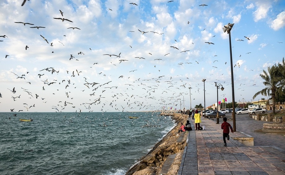 با فروکش کردن تب گرما از اواخر مهرماه، میهمانان خلیج همیشه فارس از راه میرسند و بر پهنهی این دریای زیبا چشمان بیننده را مجذوب میکنند. با رسیدن این پرندگان زیبا ساحل بندر بوشهر مکانی جذاب برای تفریح و سرگرمی مردم است و آنها با ضایعات مرغ و نان این پرندگان را از وسط دریا به سمت ساحل دعوت میکنند: