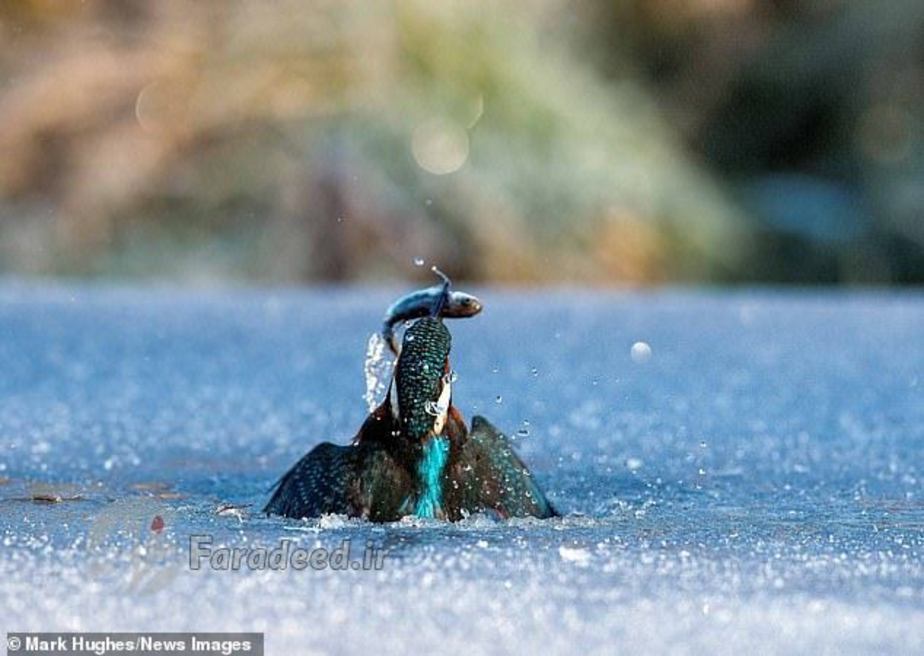 به گزارش فرادید به نقل از دیلیمیل ، مارک هیوز، ۵۸ساله اهل یورکشایر در انگلستان، یک سوراخ کوچک را در دریاچه یخزده لیدز حفر کرد تا قرلی بتواند به درون آب شیرجه زده و طعمهاش را شکار کند.
