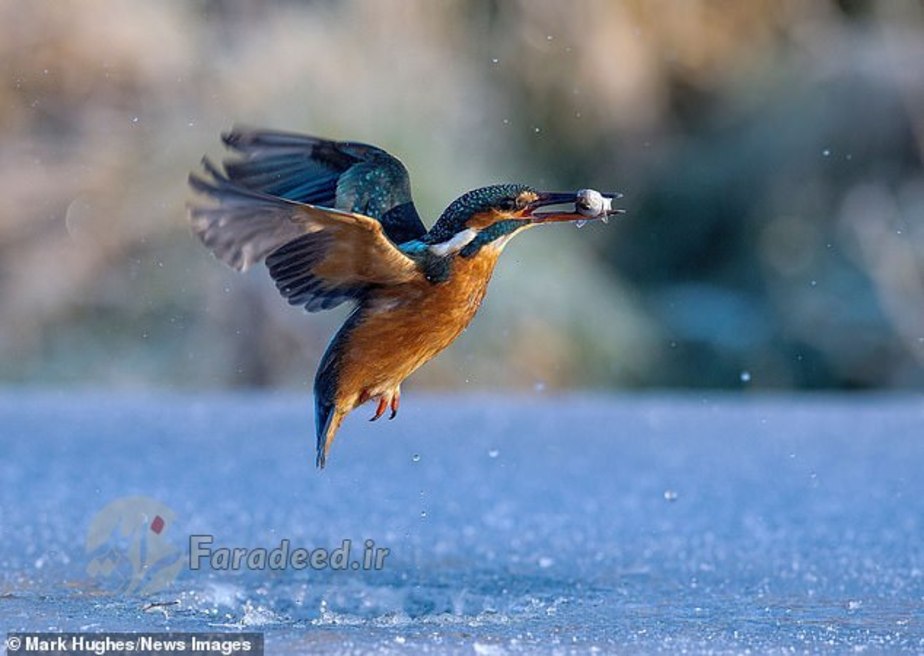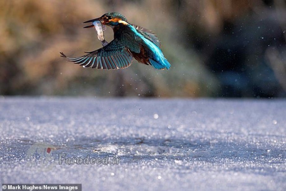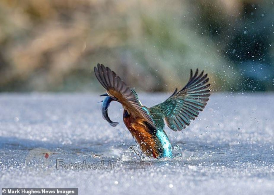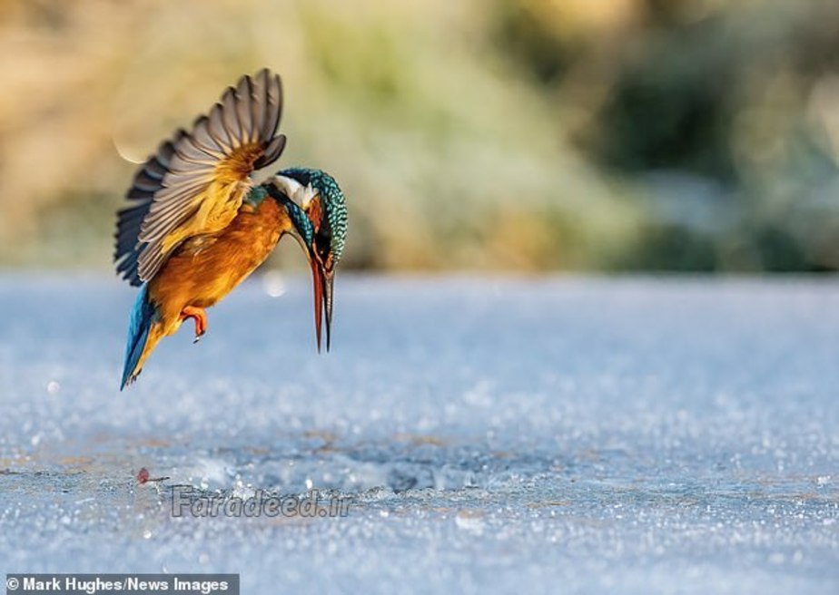 فرادید | یک عکاس حیاتوحش لحظه شگفتانگیزی را ثبت کرده که یک قرلی ماده پیش از شیرجه زدن به درون آبهای یخزده یک دریاچه برای شکار ماهی، بر فراز آن چرخ میزند.