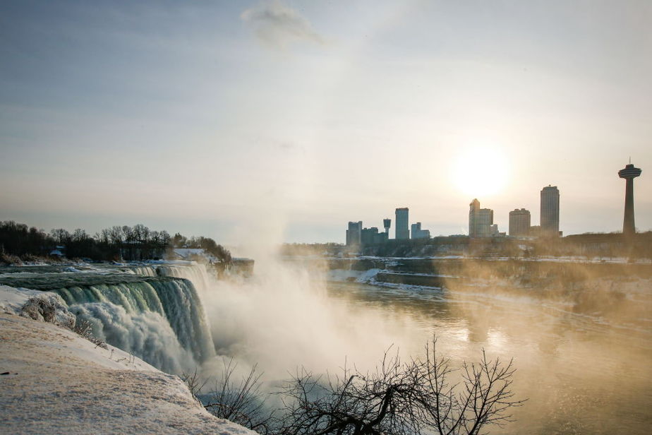 آبشار شهر نیاگارا - فالز در ایالت نیویورک در احاطه یخ قرار گرفته است.