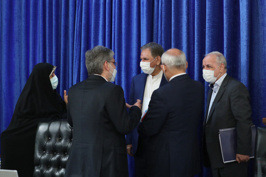 اولین جلسه هیات دولت در سال ۱۴۰۰ امروز چهارشنبه به ریاست حسن روحانی رییس جمهور برگزار شد. در حاشیه این جلسه اعضای کابینه به گفتگو و خوش و بش با یکدیگر پرداختند. محمد جواد ظریف و جواد آذری جهرمی وزرای خارجه و ارتباطات در این گفتگوها حضور پررنگی داشتند: