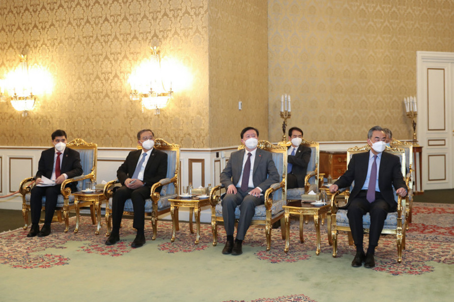پیش از این دیدار وزیر امور خارجه چین و علی لاریجانی عضو مجمع تشخیص مصلحت نظام در دیداری مشترک به گفتگو نشستند و درباره موضوعاتی همچون توسعه مناسبات دوجانبه به رایزنی پرداختند.