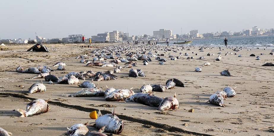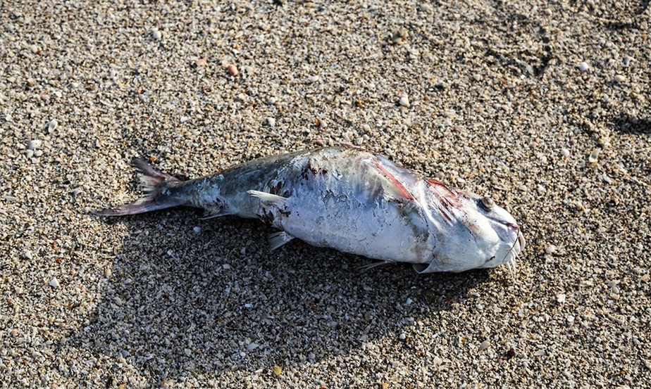 لاشه این ماهیها توسط جریان آب به ساحل آورده شده است و بیش از ۱.۵ تا ۲ کیلومتر از ساحل این منطقه شاهد لاشههای به گل نشسته گربه ماهیها است.