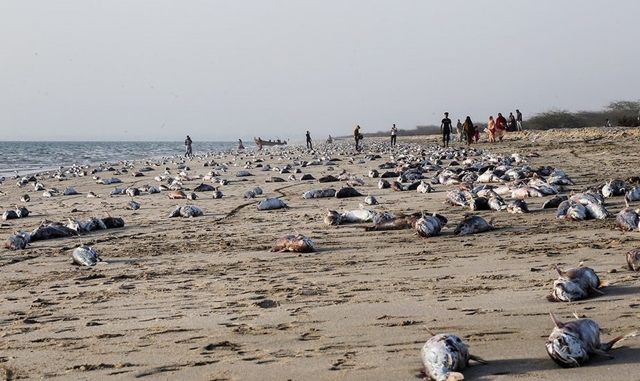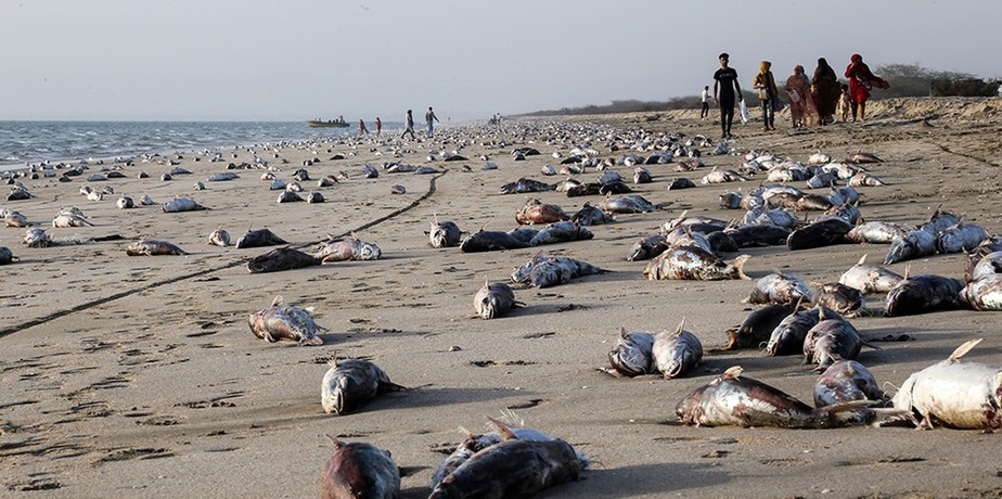 هزاران گربه ماهی بالغ بر ۱۰ تن در ساحل مقسا در جاسک جان خود را از دست دادهاند. لاشه این ماهیها توسط جریان آب به ساحل آورده شده است و بیش از ۱.۵ تا ۲ کیلومتر از ساحل این منطقه شاهد لاشههای به گل نشسته گربه ماهیها است.