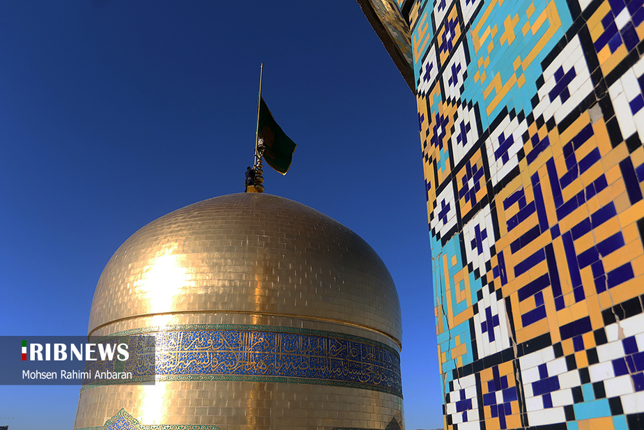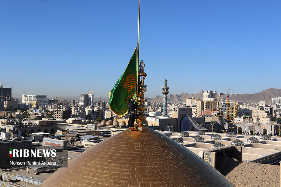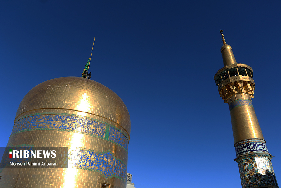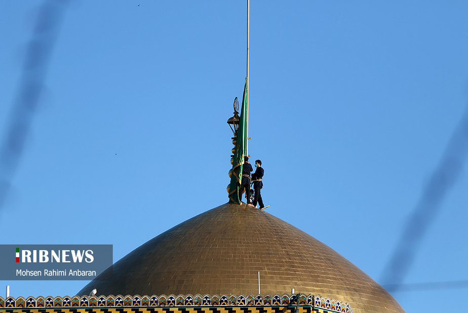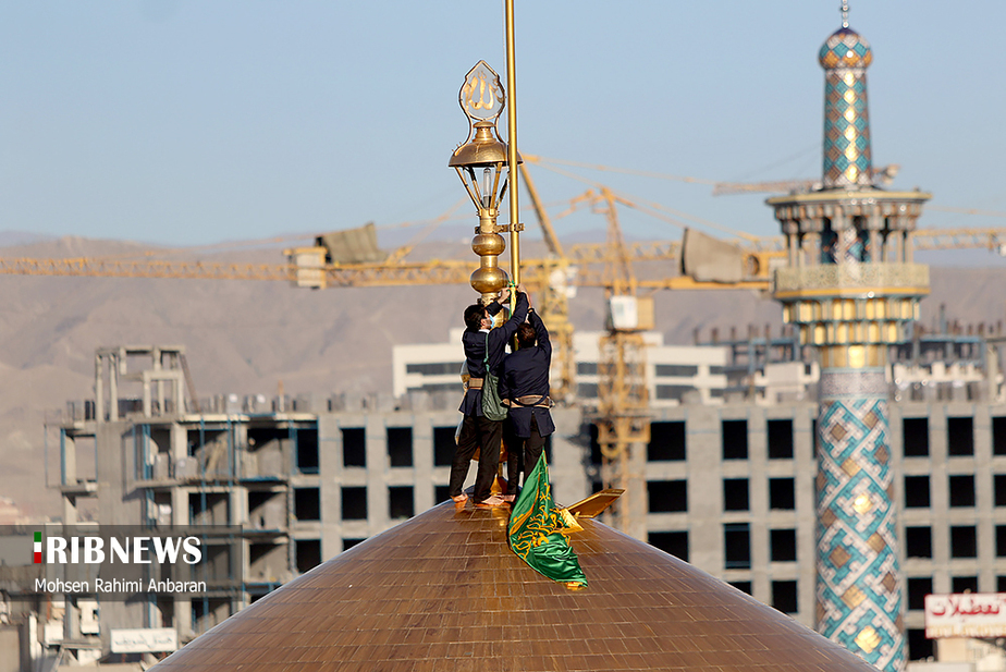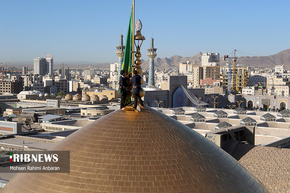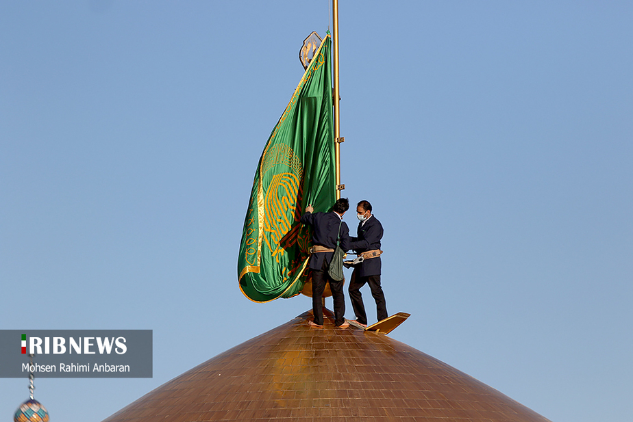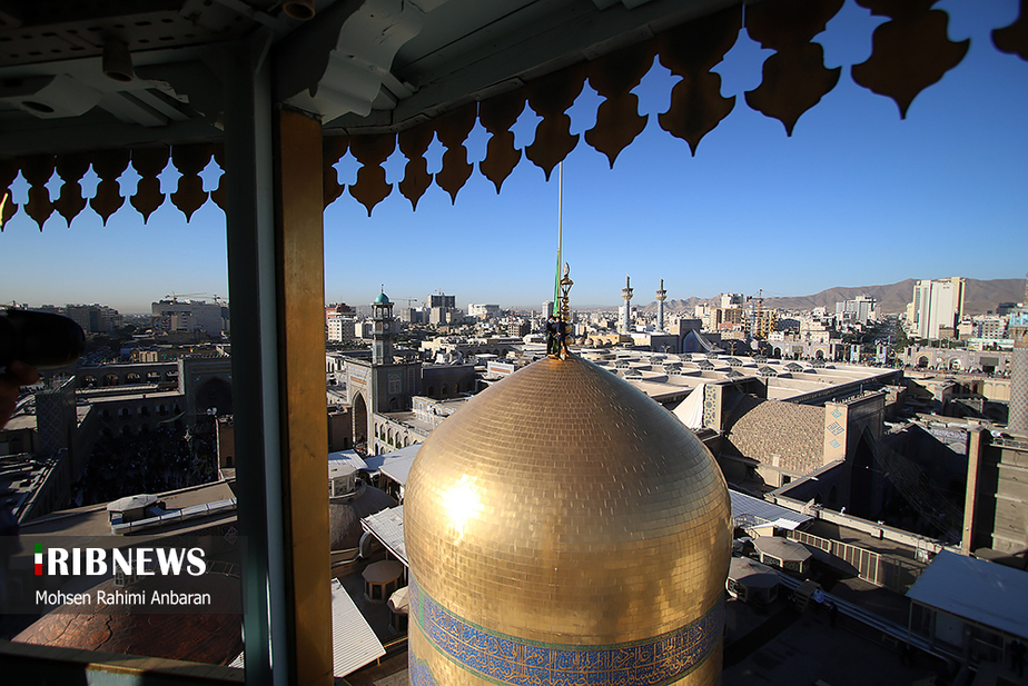 تصاویر/ تعویض پرچم حرم مطهر امام رضا (ع)