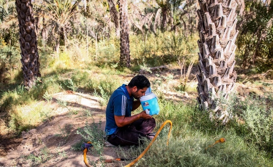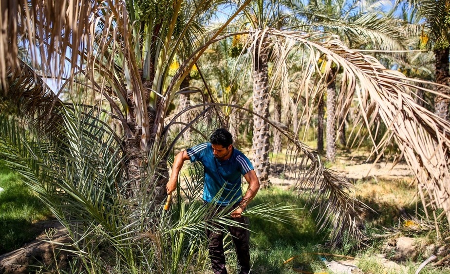 علی یک کشاورز جوان ۳۳ ساله روستای نظرآقا از توابع شهرستان دشتستان استان بوشهر است که در فصل آرایش خوشههای نخیلات که در زبان محلی به آن (کنه زدن) گفته میشود مانند بسیاری از کشاورزان این روستا به دلیل گرمای شرجی طاقت فرسا استان از صبح زود کار خود را شروع میکند.