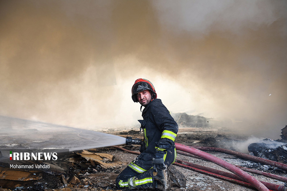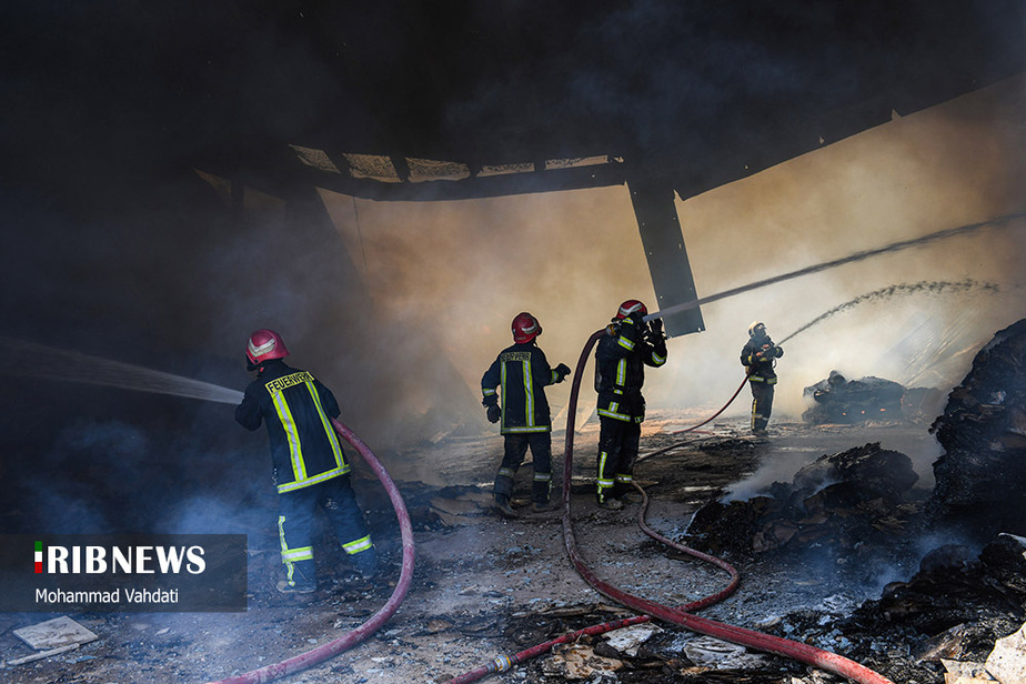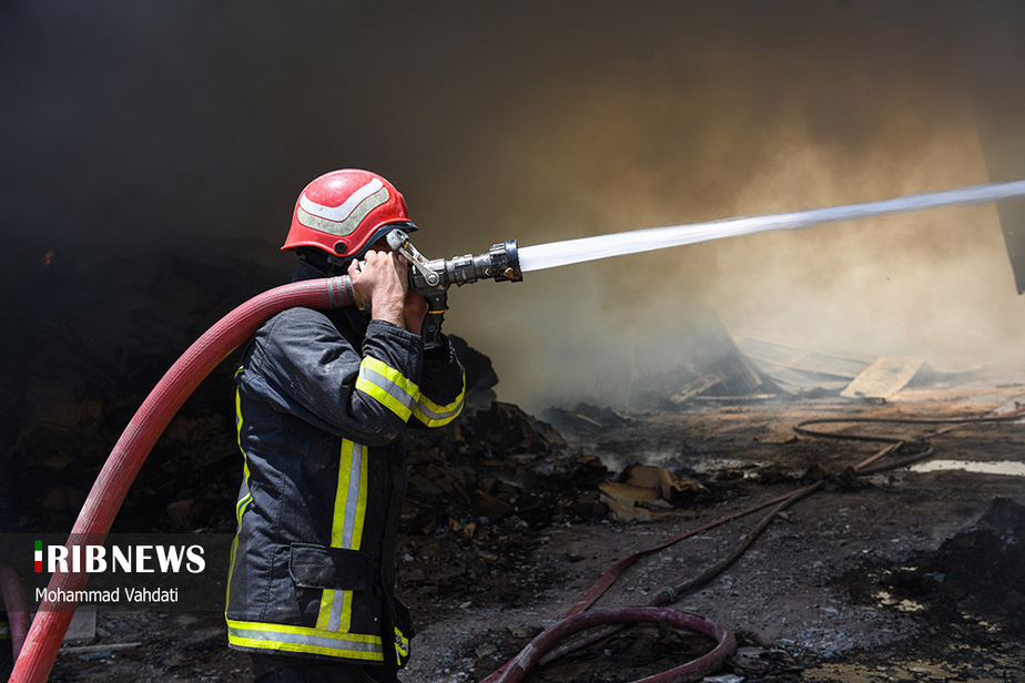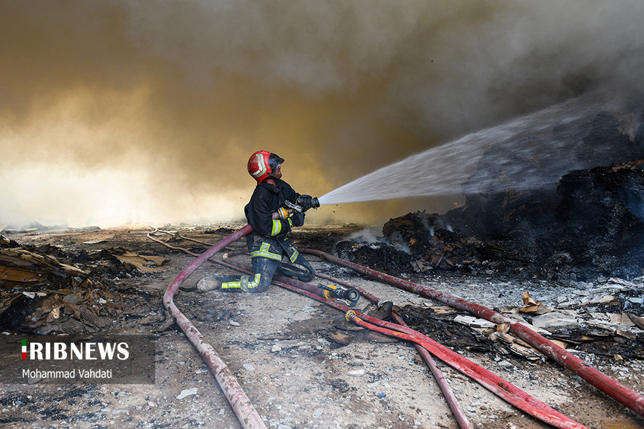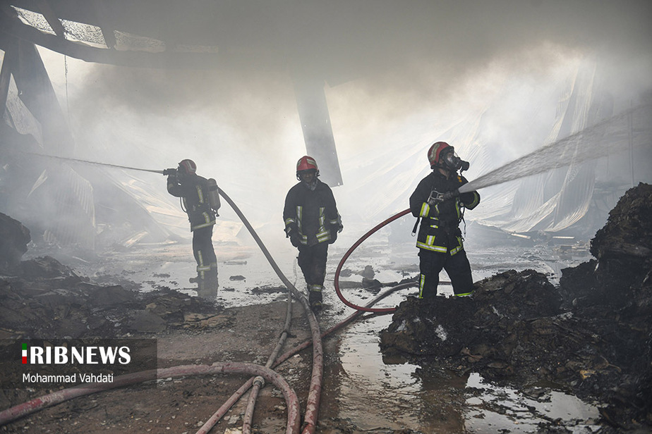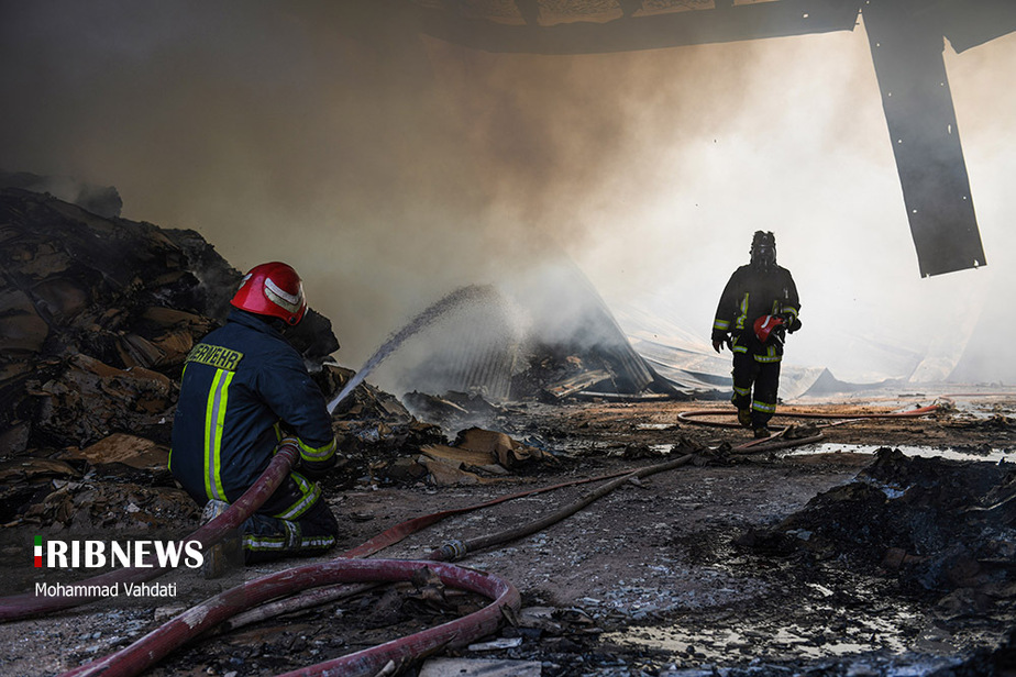 تصاویر/ آتش سوزیِ کارخانه تولید کفش در قم