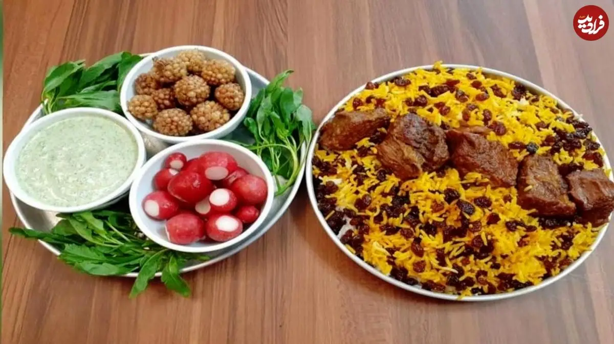 طرز تهیه کشمش پلو مازندرانی با گوشت مجلسی