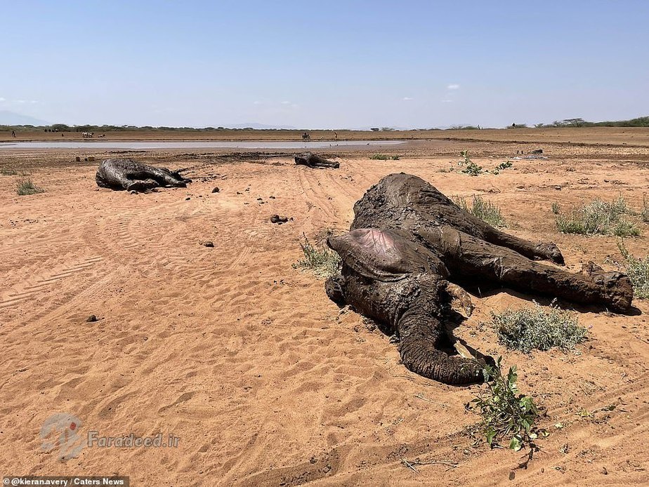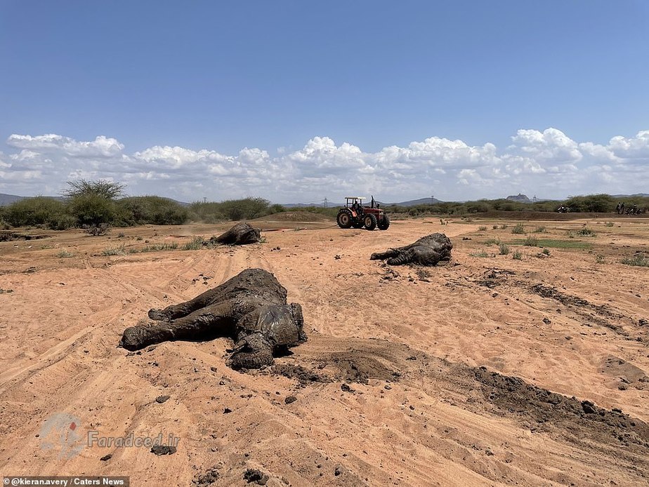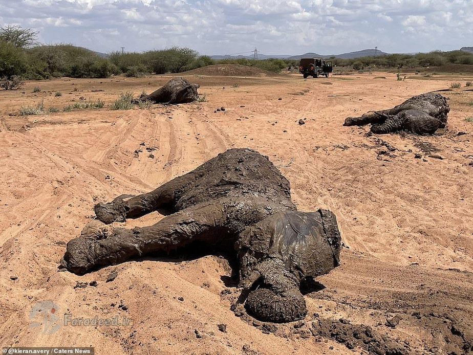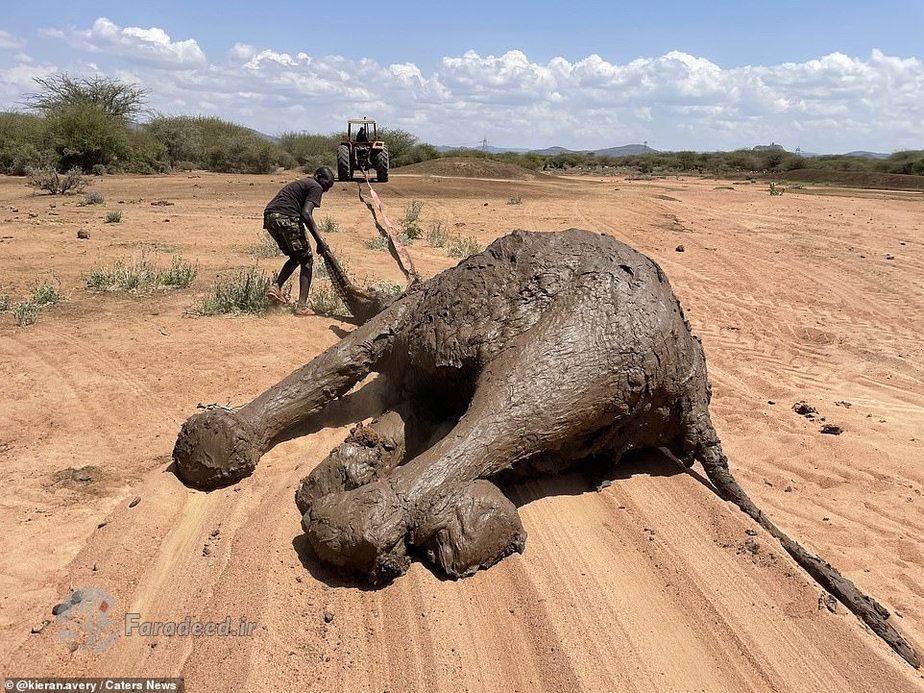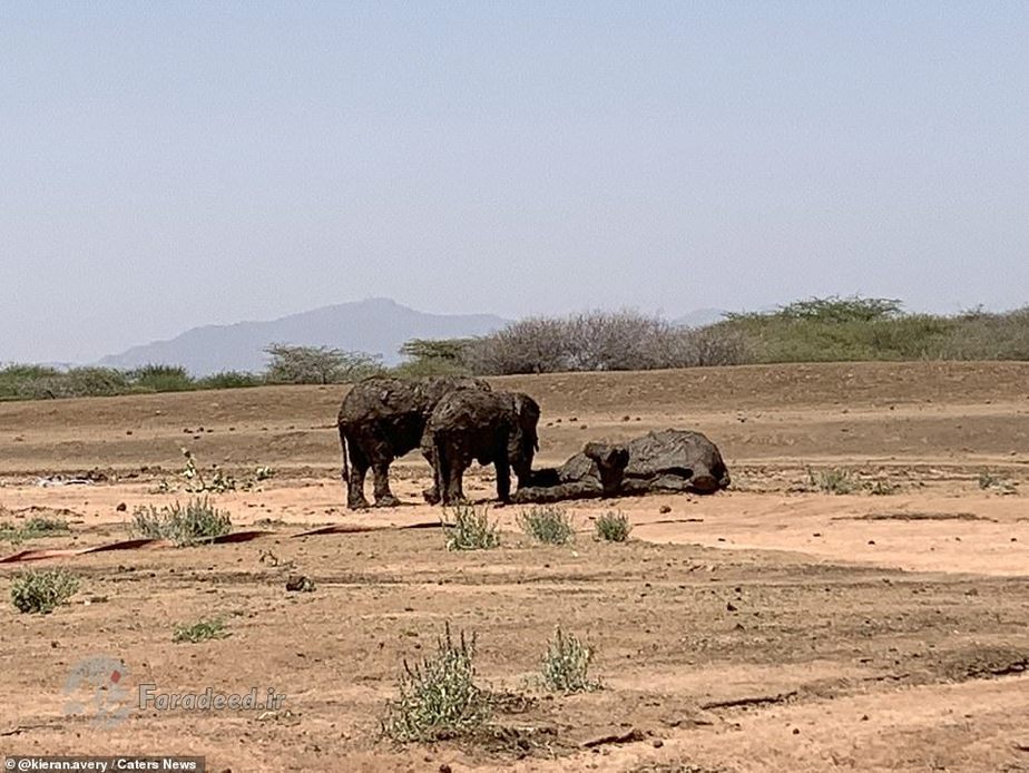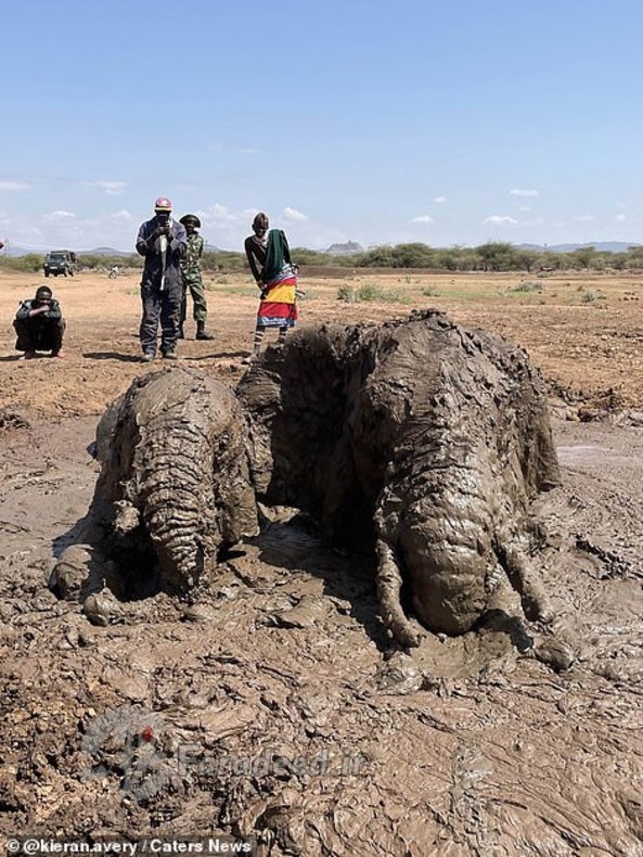 فرادید | یک خانواده از فیلهای آفریقایی پس از آنکه در یک استخر پر از گل در کنیا گیر افتادند، با خوششانسی فرار کردند.