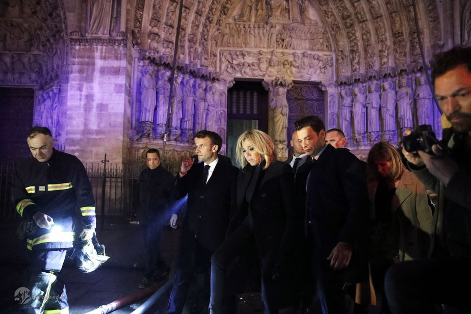 رئیس جمهور فرانسه، امانوئل ماکرون، به سرعت در محل حاضر شد و قول داد که کلیسای جامع دوباره بازسازی خواهد شد.